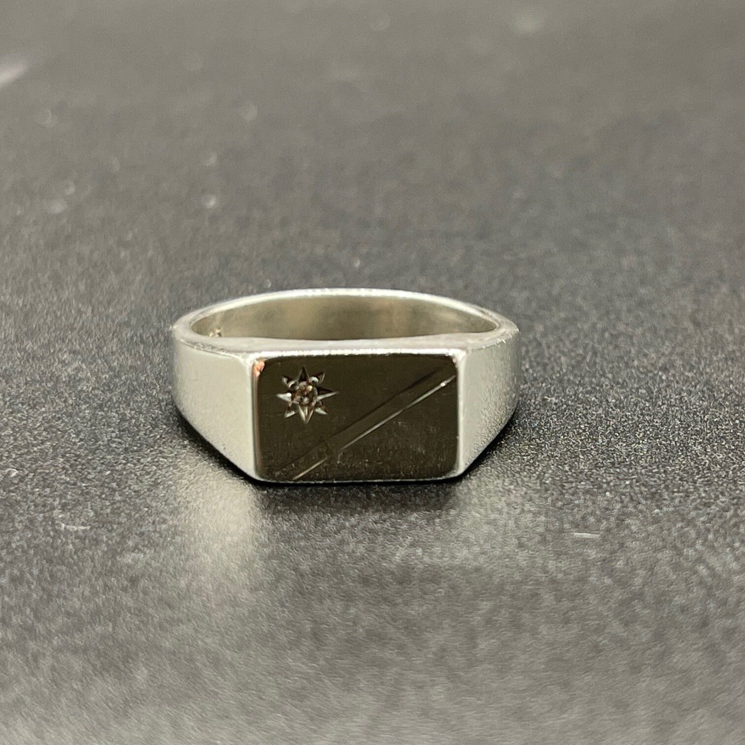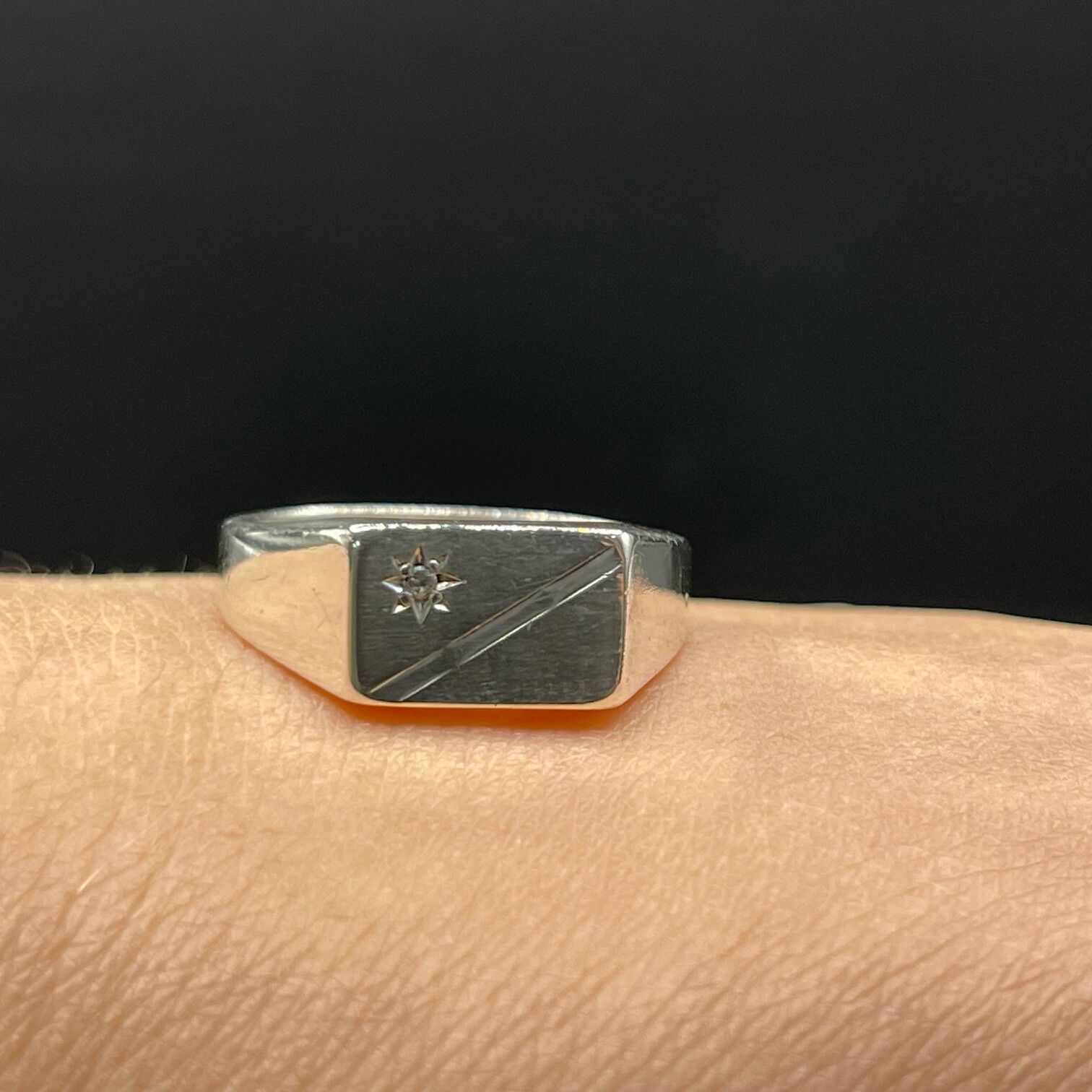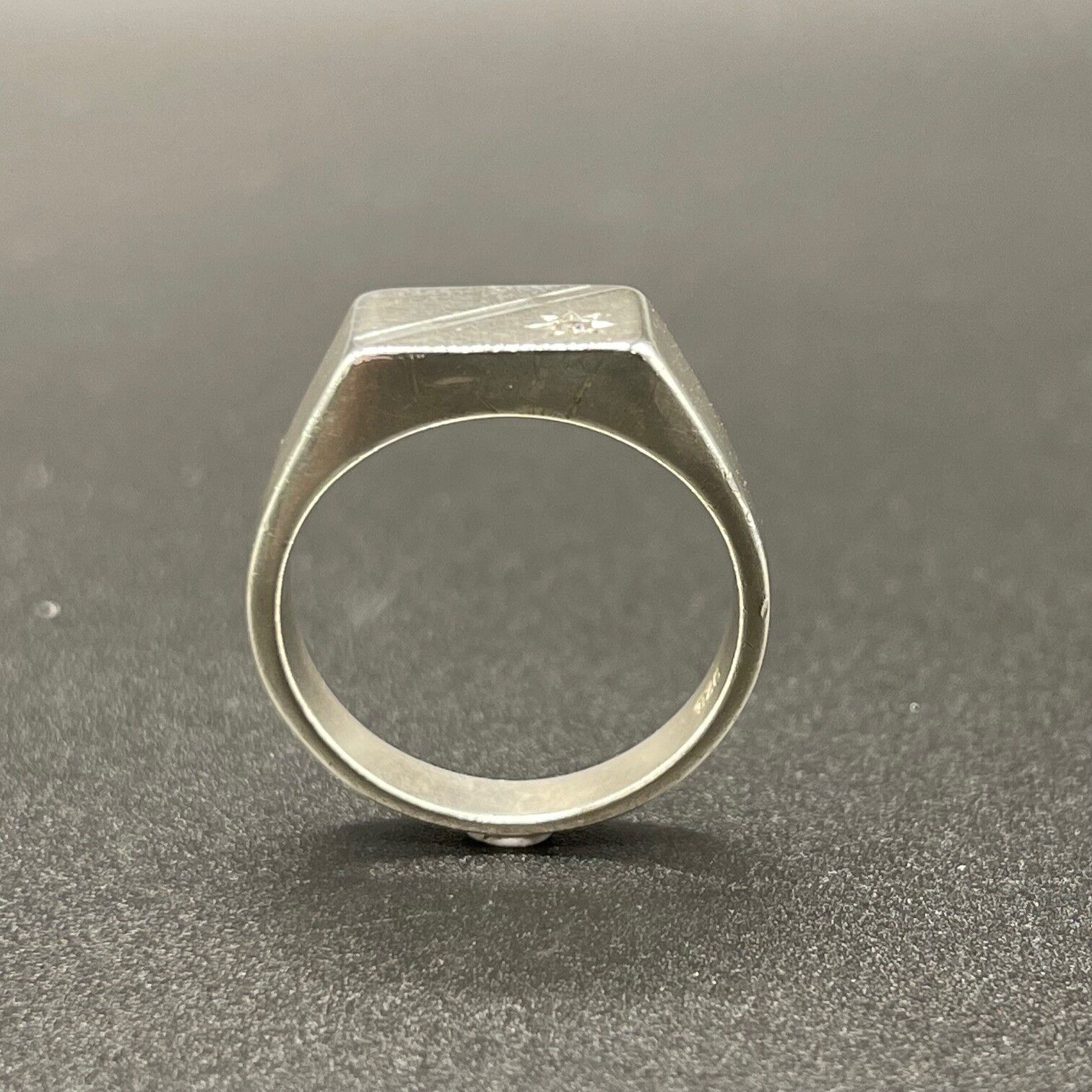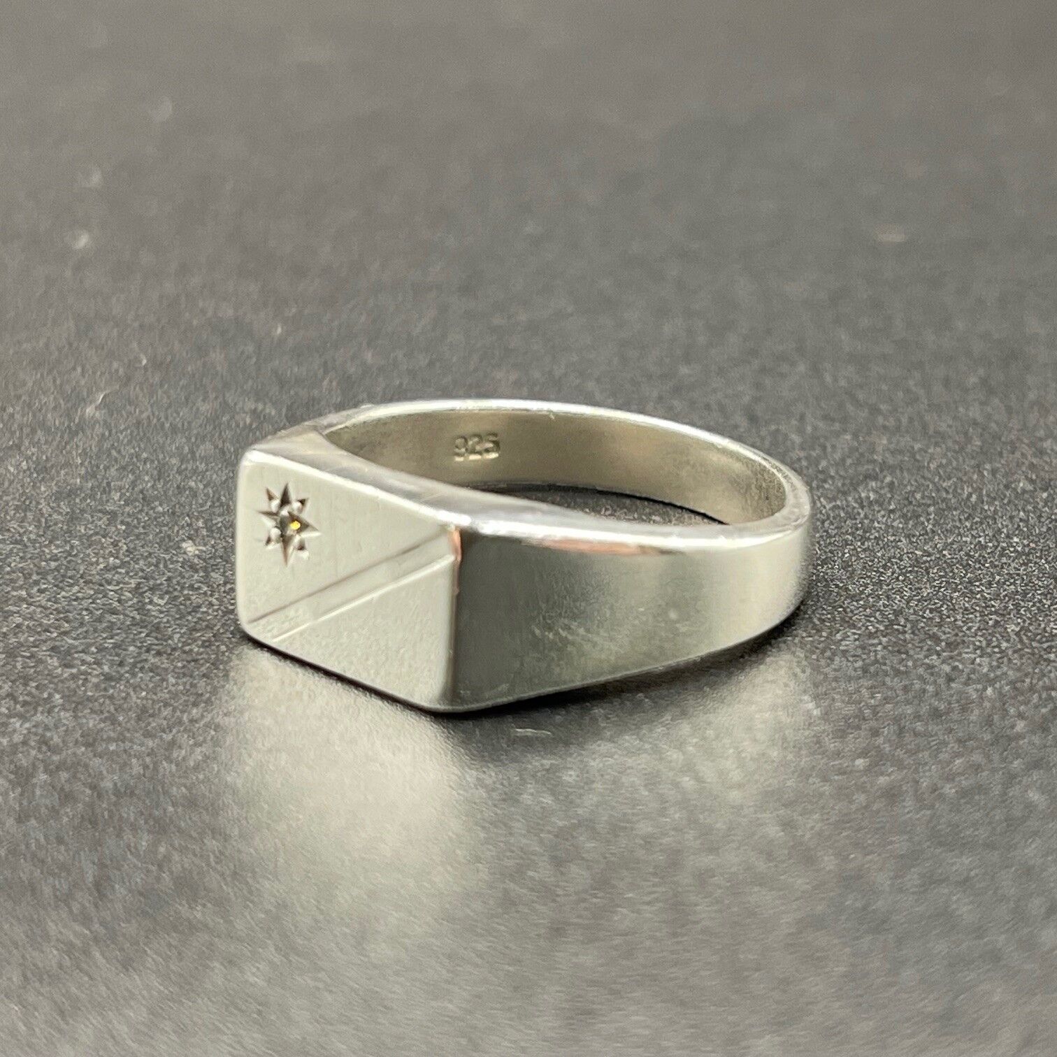 Mens 925 Sterling Silver CZ Signet Ring