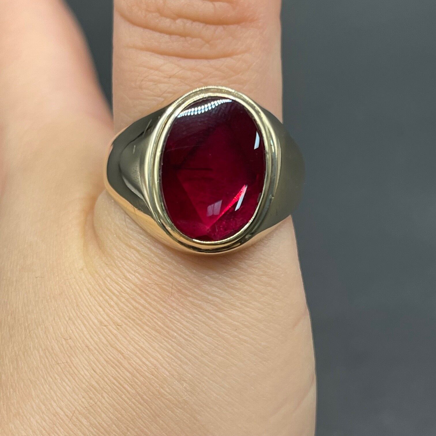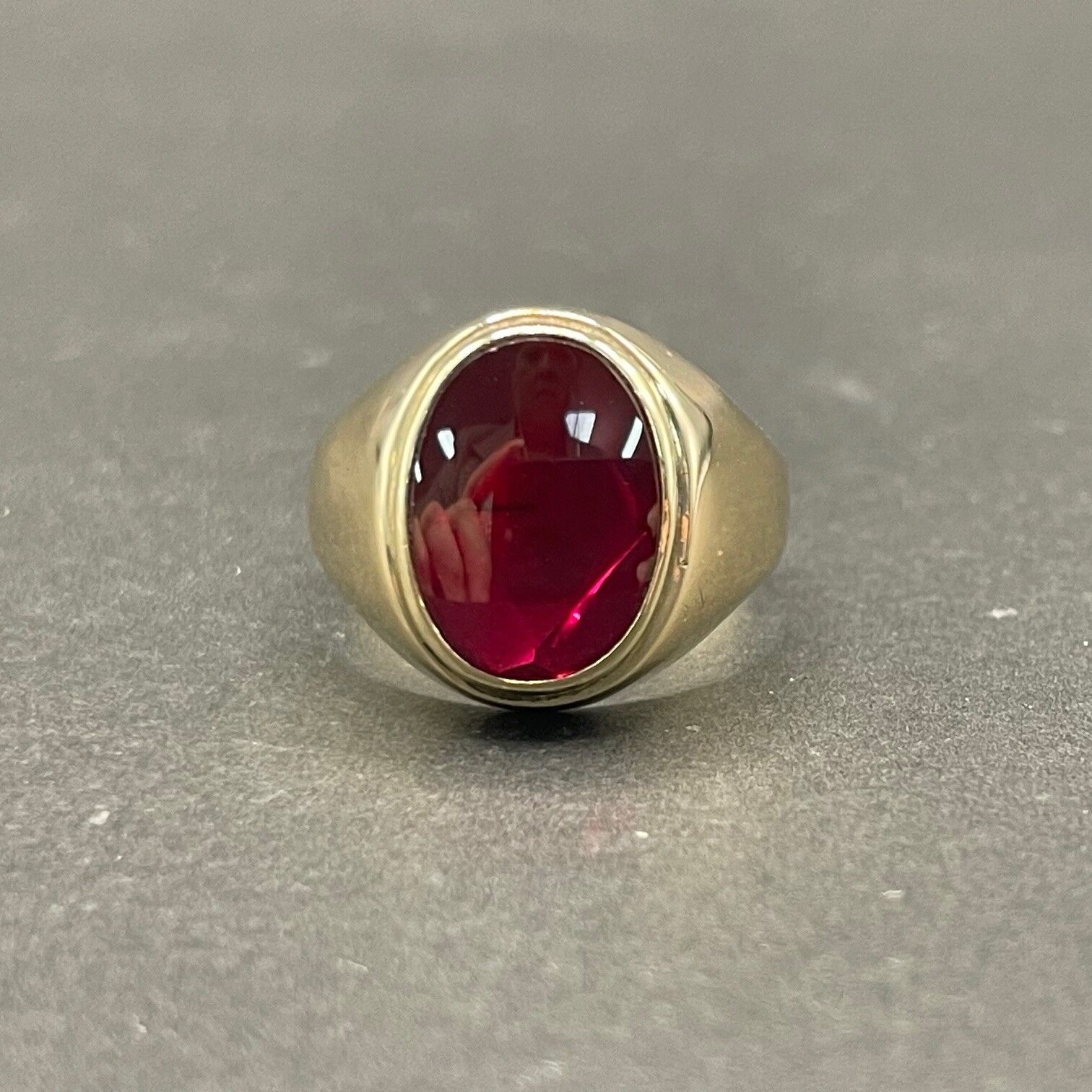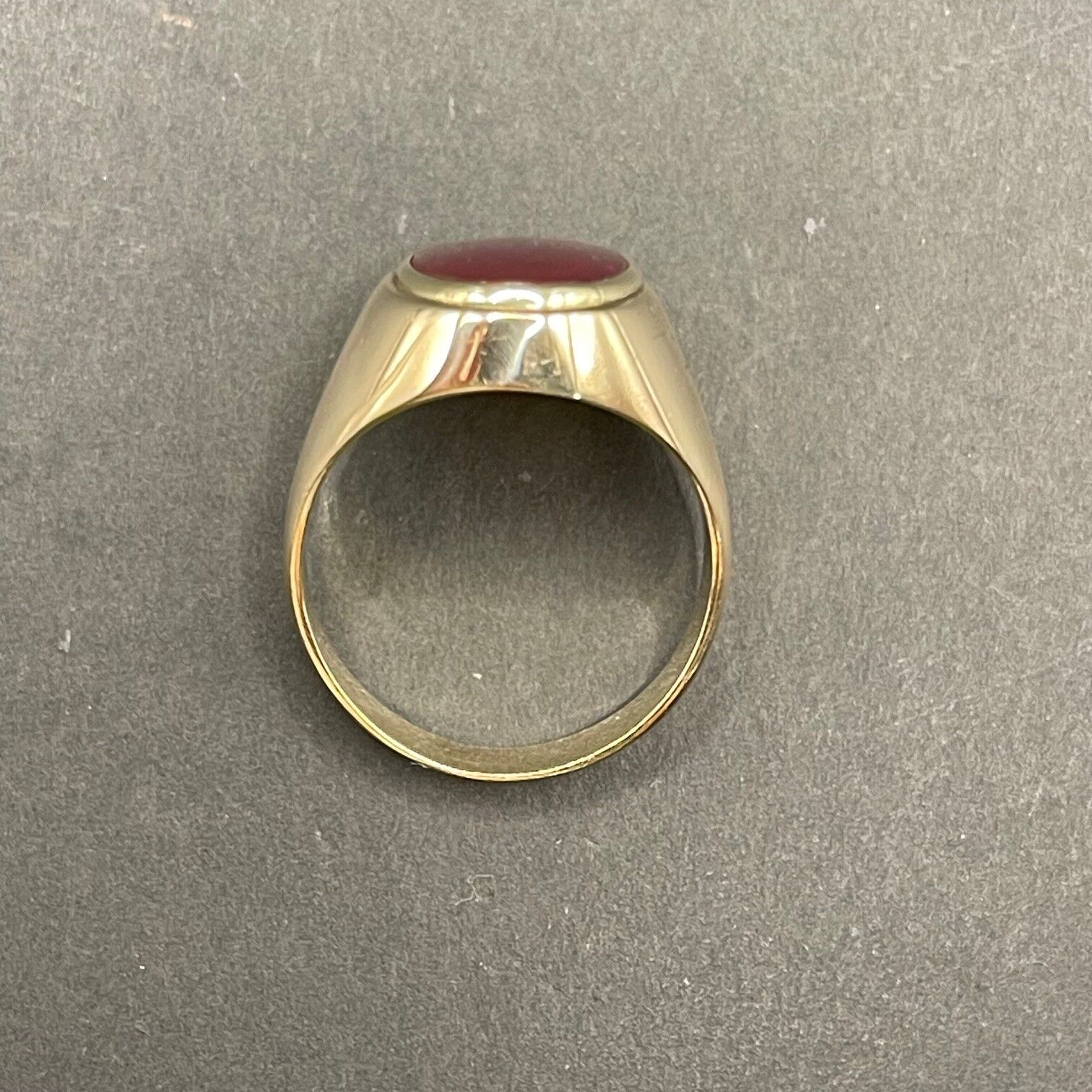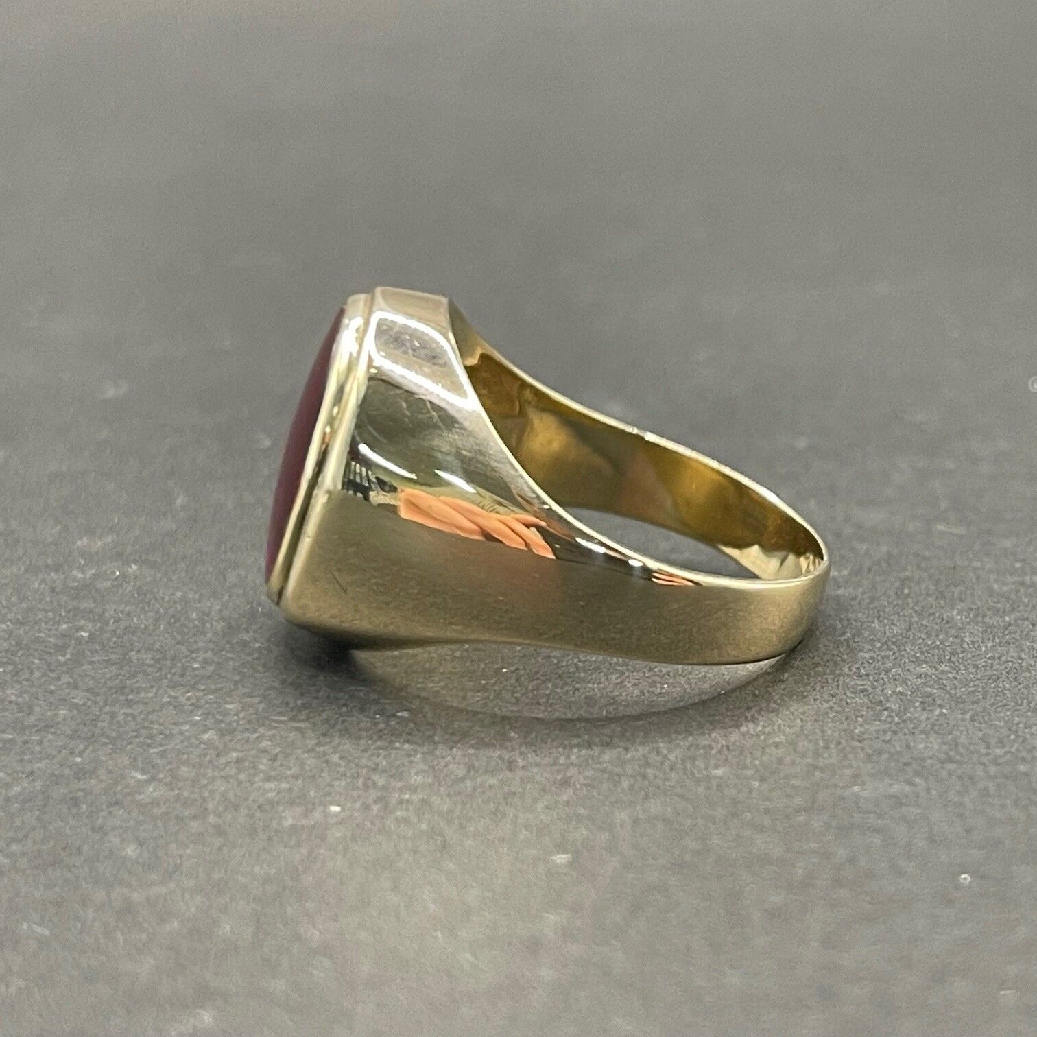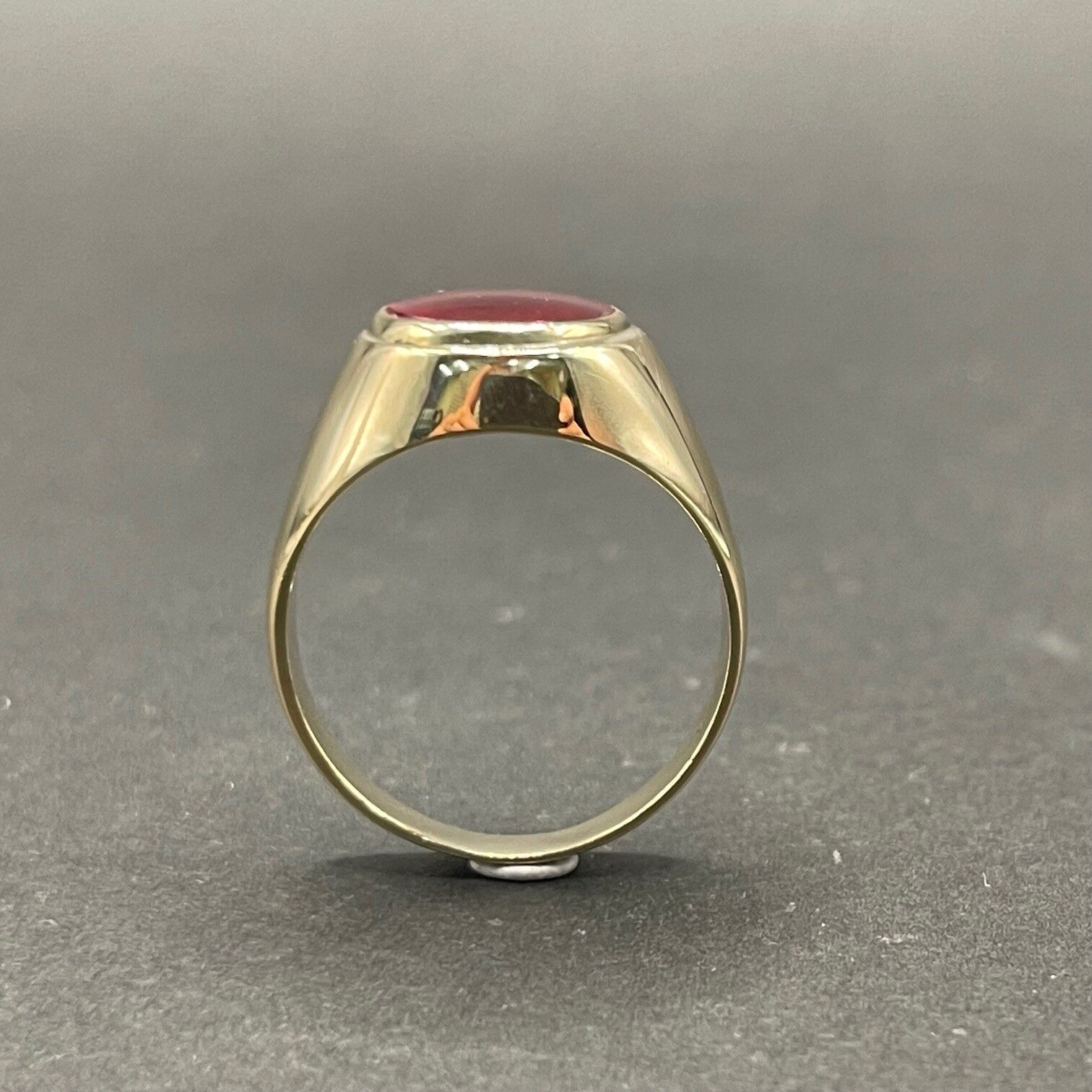 Mens 9ct Yellow Gold Red Gemstone Ring