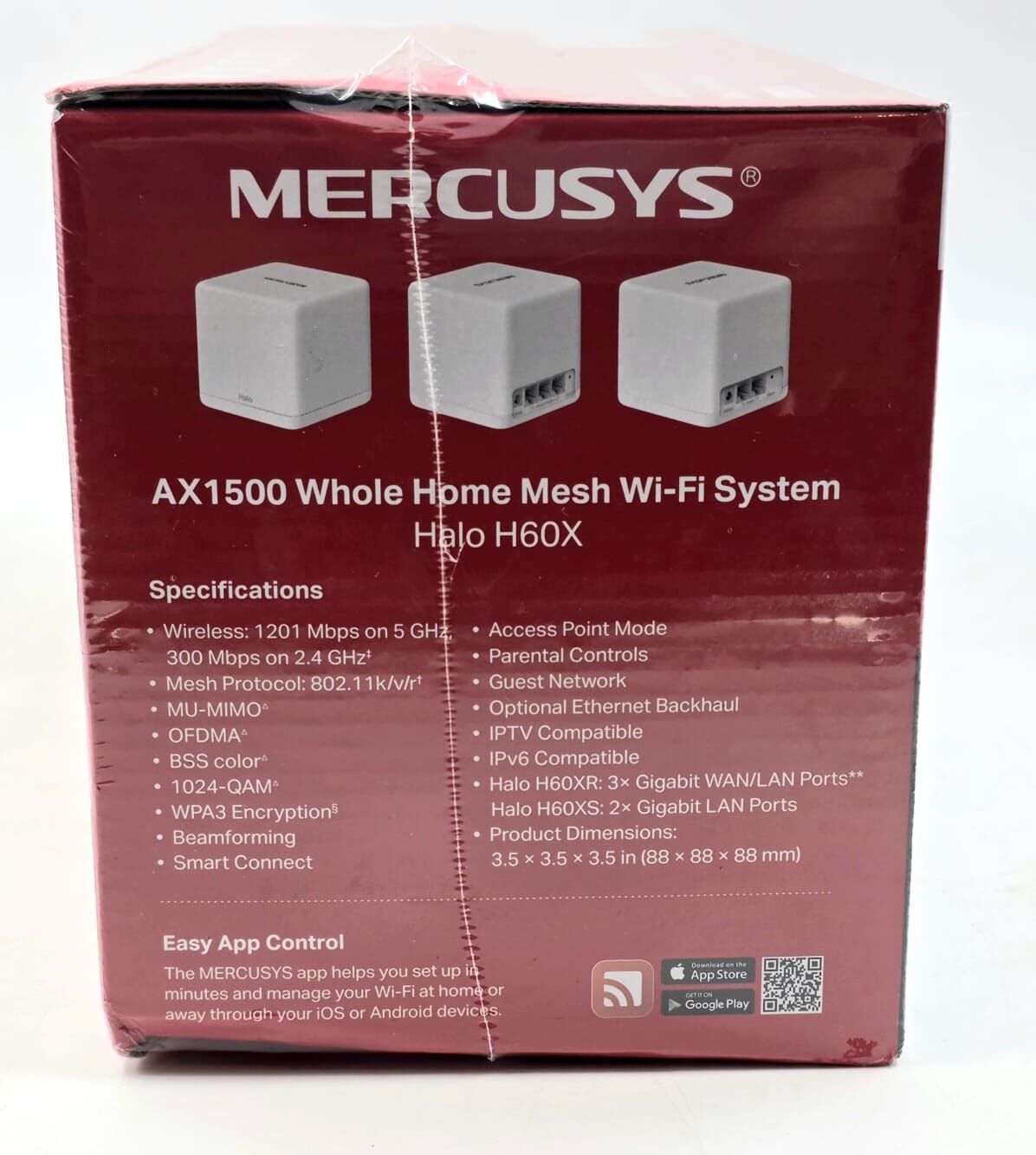 Upgrade your home network with the Mercusys Halo H60X AX1500 Whole Home Mesh WiFi 6 System (3-Pack). Designed to eliminate dead zones, this dual-band WiFi 6 mesh system delivers fast, stable connectivity throughout your entire home with seamless roaming under a single network name.