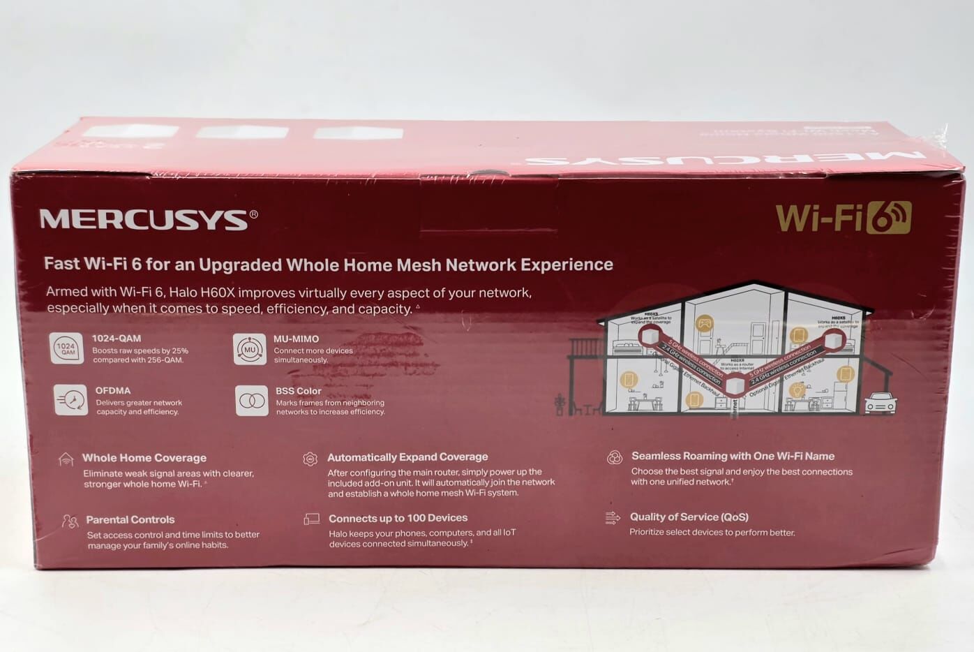 With combined speeds of up to 1500 Mbps (1201 Mbps on 5GHz and 300 Mbps on 2.4GHz), the Halo H60X ensures smooth streaming, gaming, and browsing. The system supports over 100 connected devices, making it ideal for modern smart homes.