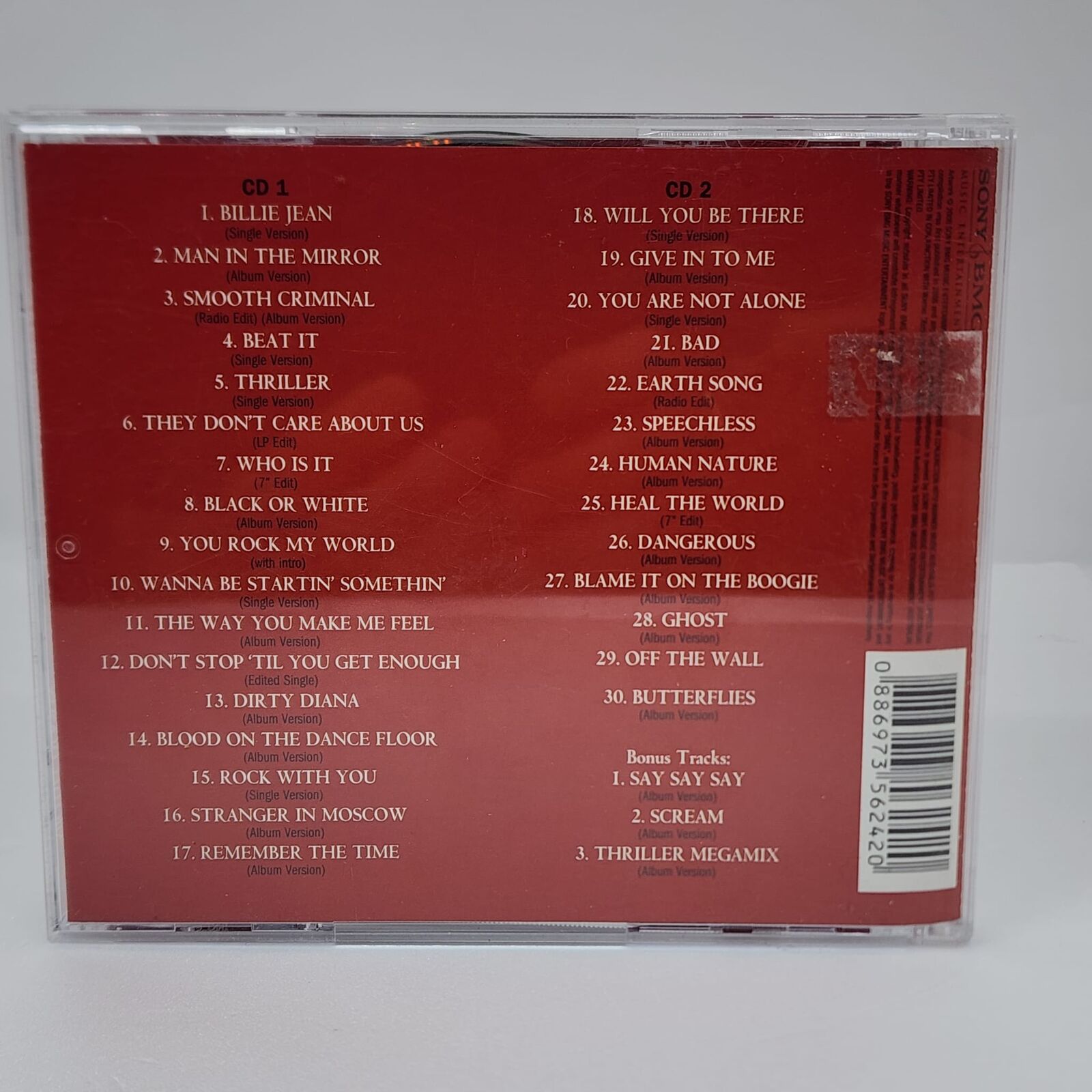 - Disc 2 features 3 bonus tracks: “I Say Say Say,” “Scream,” and “Thriller Megamix”