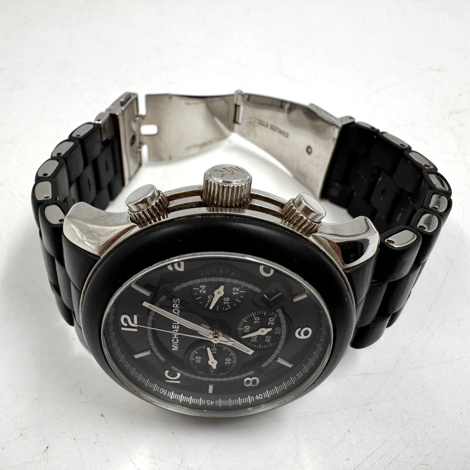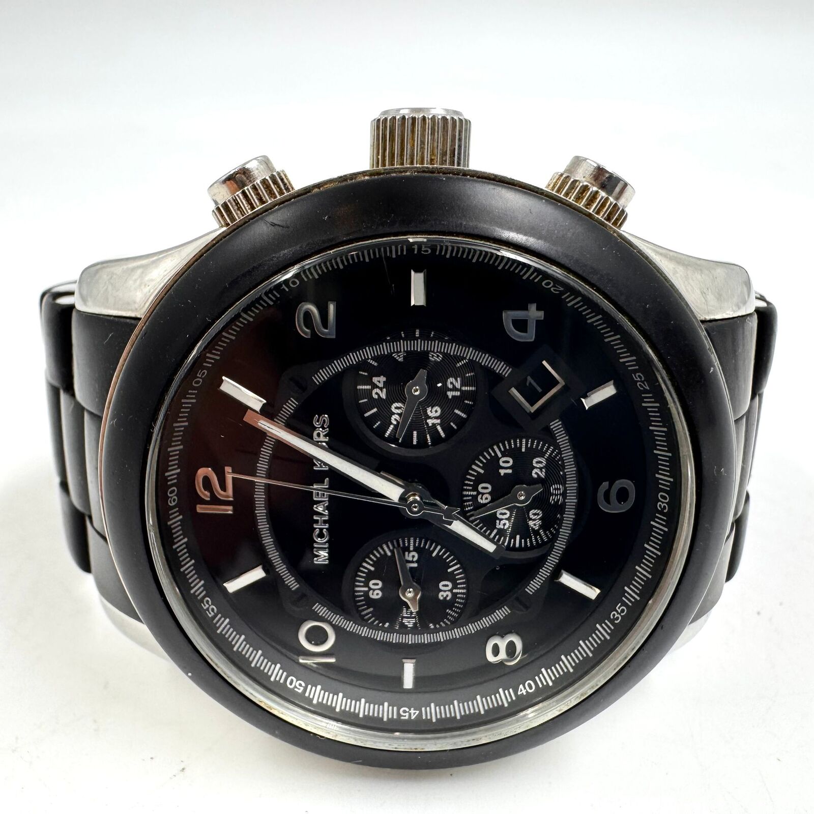 Michael Kors Runway MK8107 45mm Silver Black Mens Chronograph Watch