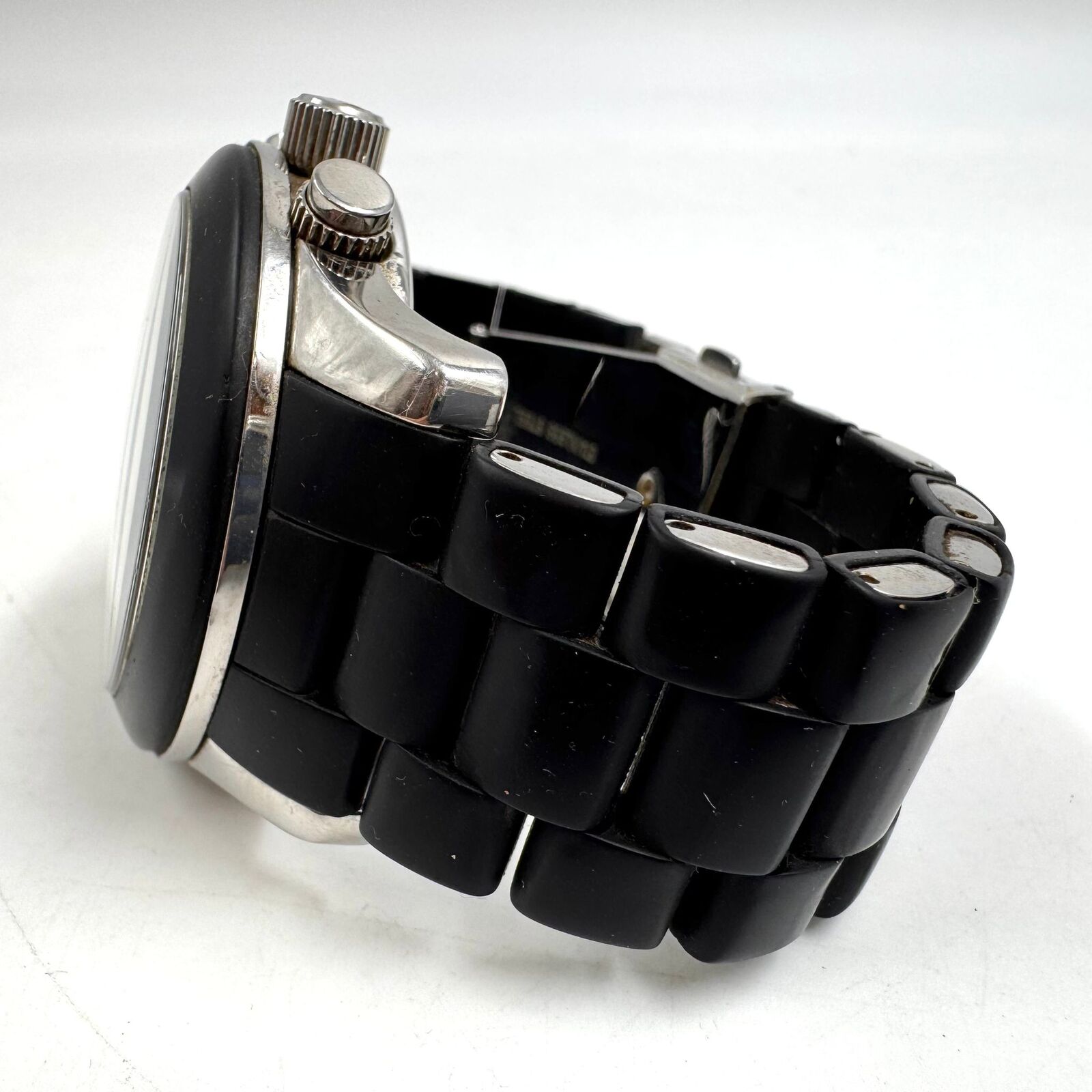 - Black polyurethane strap with stainless steel inserts: Comfortable, flexible all-day wear with premium metal accents