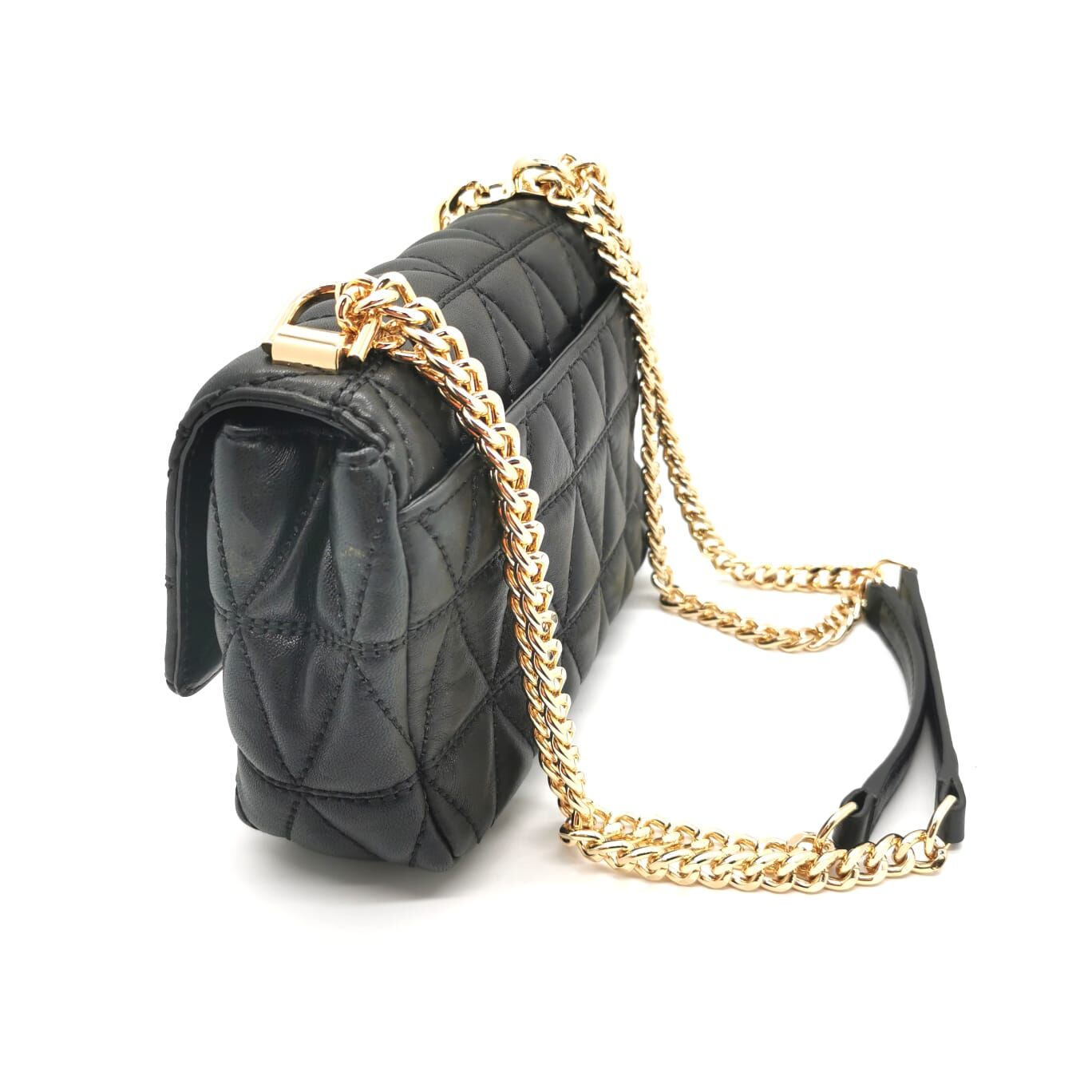 Elevate your style with this Michael Kors Sloan Quilted Medium Leather Shoulder Bag, crafted from luxurious smooth leather. The elegant quilted design pairs beautifully with the gold-tone hardware, while the leather and chain sliding shoulder strap ensures comfortable wear.