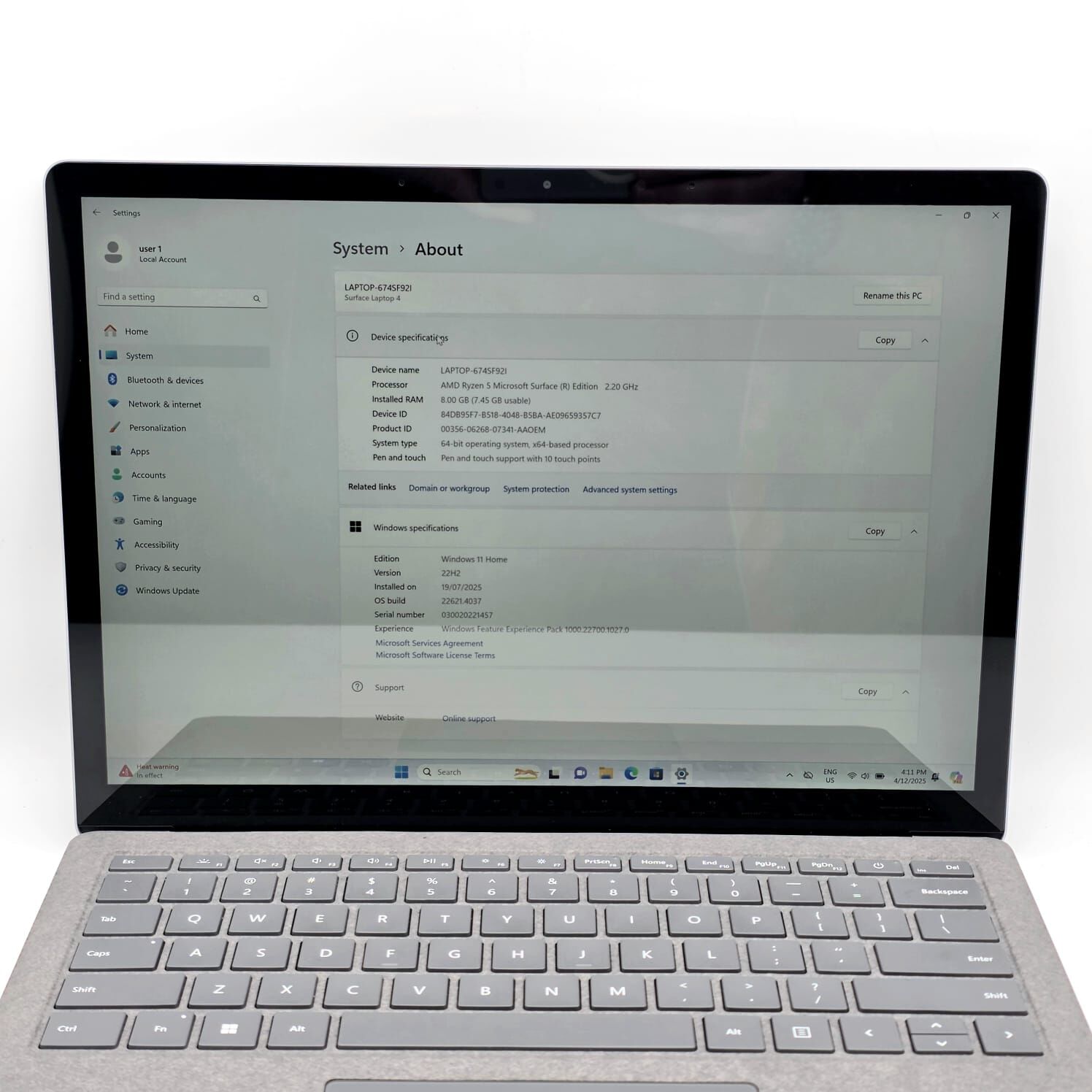 - Model: Microsoft Surface Laptop 4