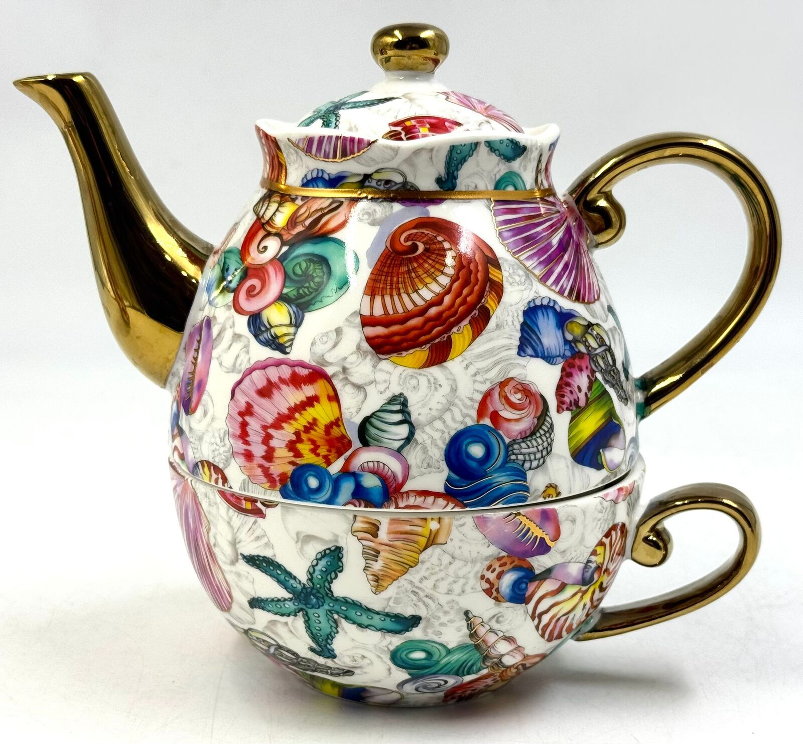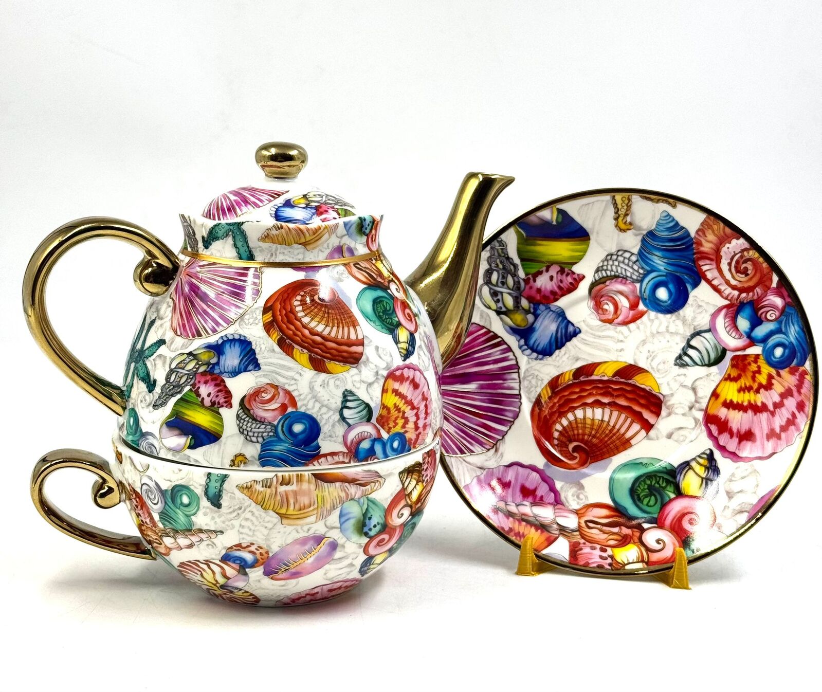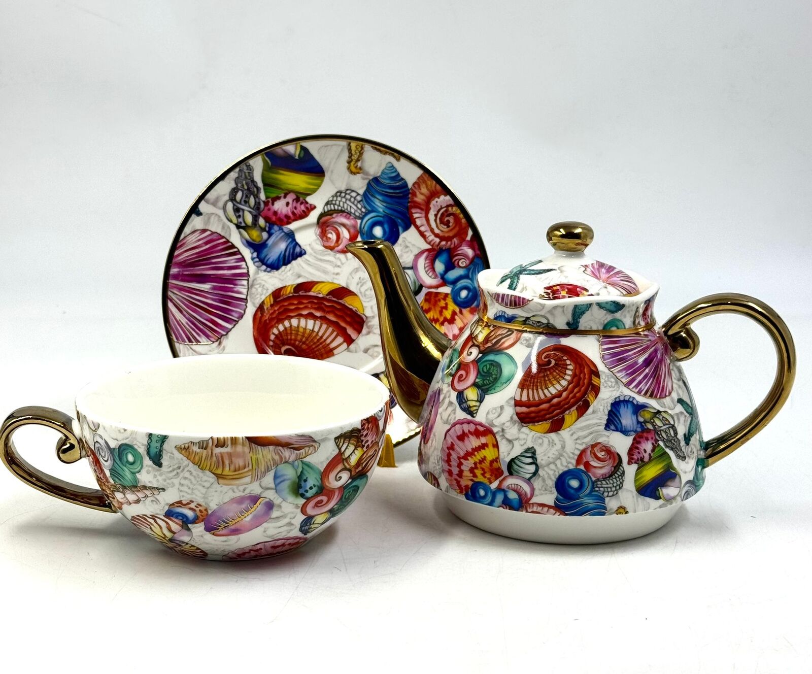 Milano Tahei Decor China Tea For One Set Teapot Cup Saucer