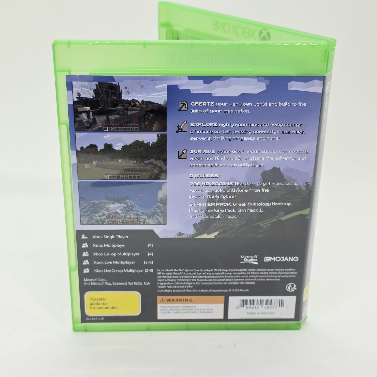 This Starter Collection enhances the core game with exclusive downloadable content, including themed texture packs and skins inspired by mythology and classic designs. Use the included 700 Minecoins to customize your experience further through the in-game Marketplace.