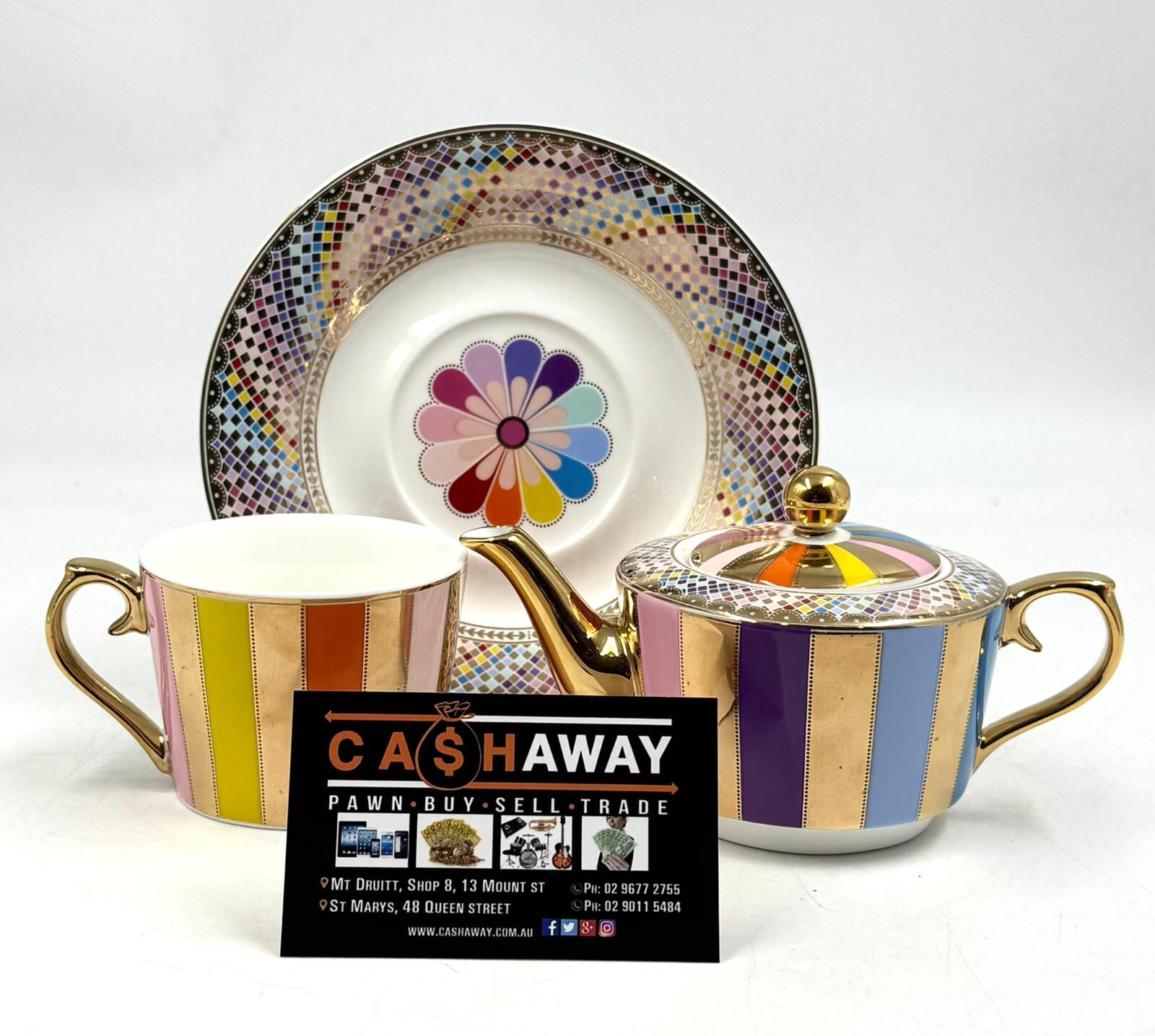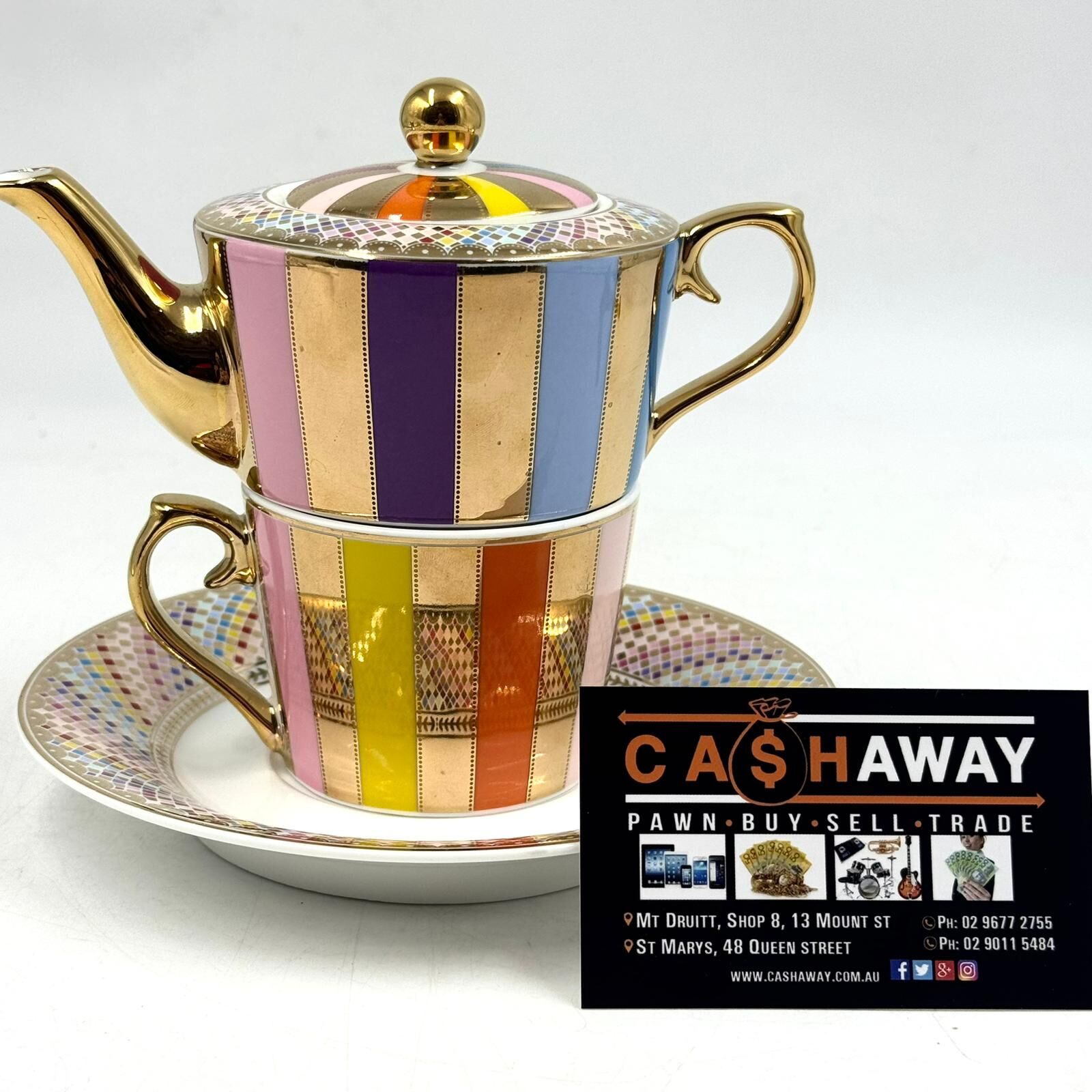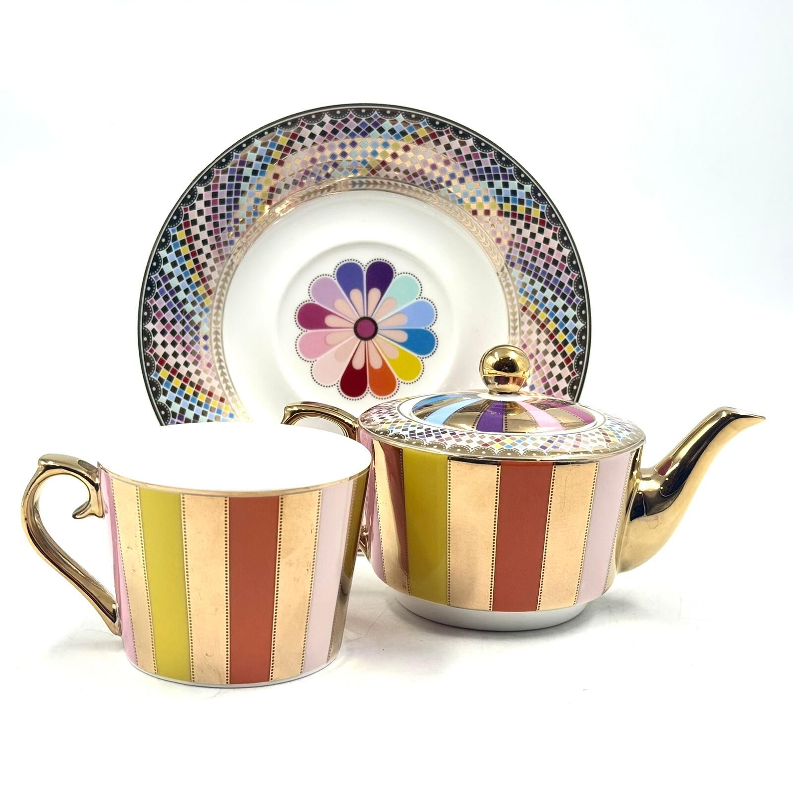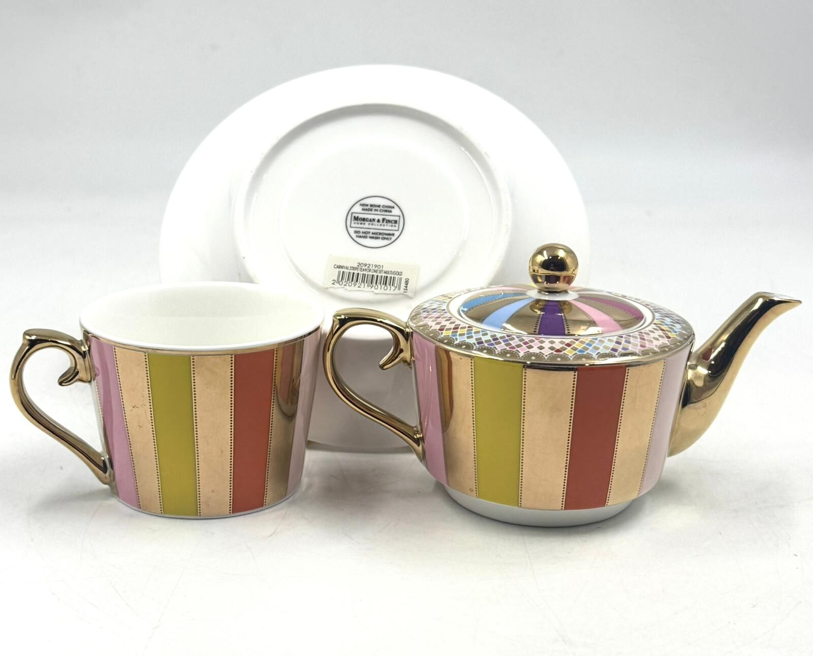 Morgan & Finch Carnival Stripe Tea for One Set Multi Gold 20921901
