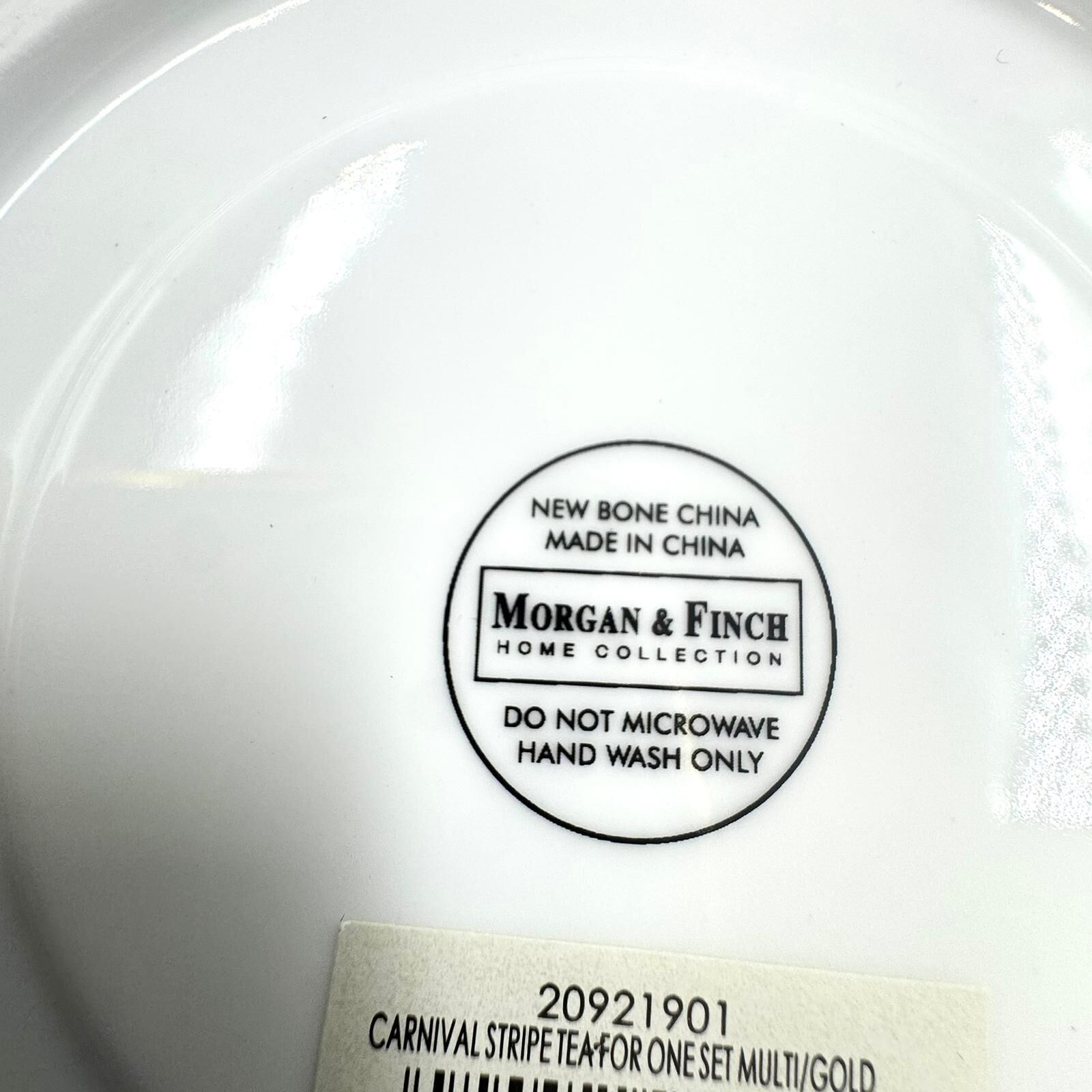 Enjoy an elegant tea experience with the Morgan & Finch Carnival Stripe Tea for One Set in Multi Gold. Made from high-quality bone china, this set is designed for single servings and adds a sophisticated touch to your tea ritual.