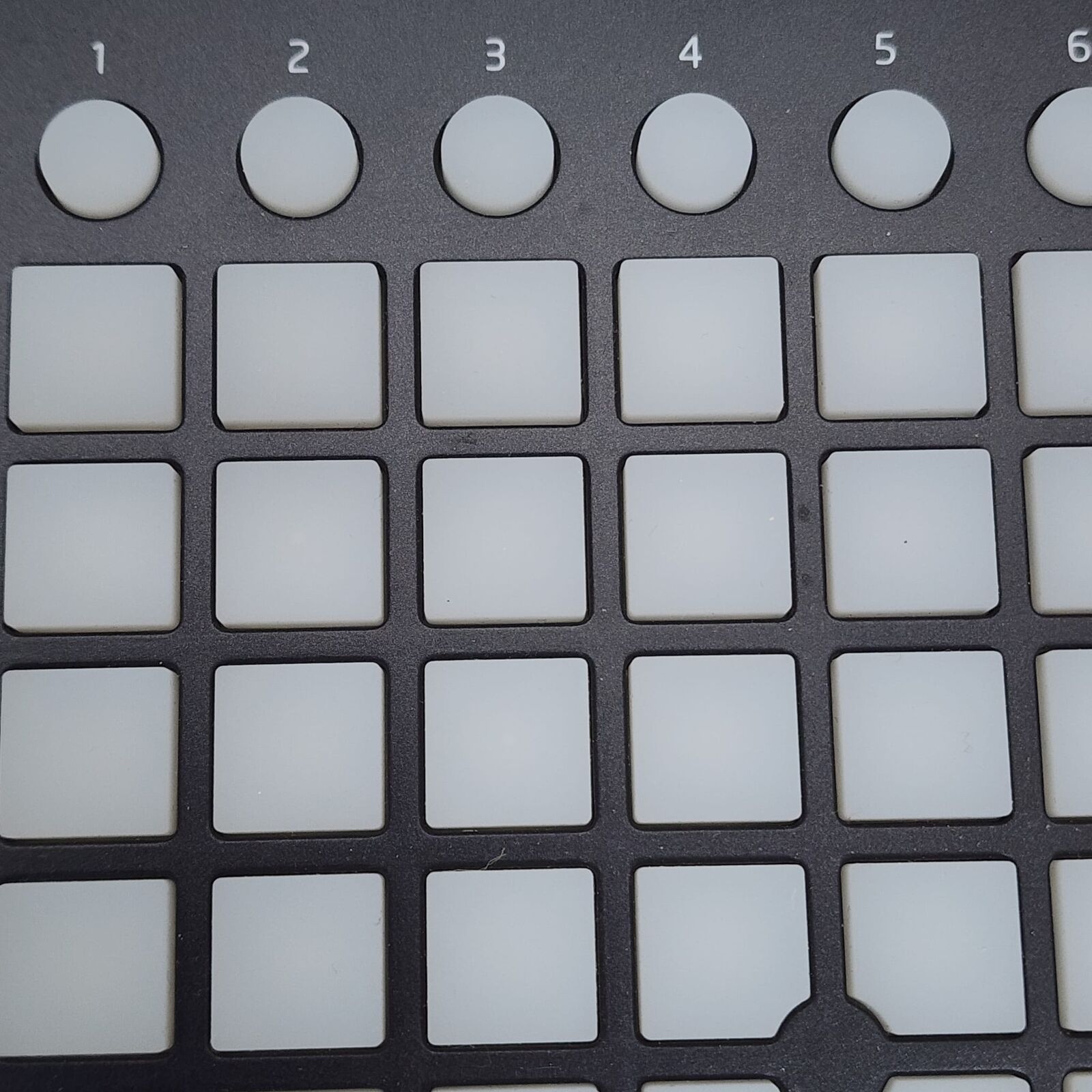 - 64 Three-Colour Backlit Pads: 8×8 grid for triggering clips, loops, and samples
