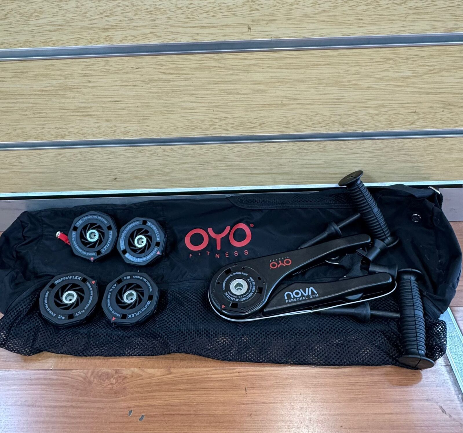 Get a full-body workout anywhere with the Oyo Nova 001 Portable Fitness Gym. This advanced resistance training device uses SpiraFlex technology, providing smooth, powerful resistance without weights or bulky equipment. Included are multiple resistance discs, ergonomic grips, and a convenient carrying bag - ideal for home, travel, or office workouts. Improve strength, flexibility, and muscle tone with dozens of exercise options targeting the upper body, core, and lower body. The Oyo Nova is lightweight, compact, and easy to set up, making it perfect for busy lifestyles or small spaces.