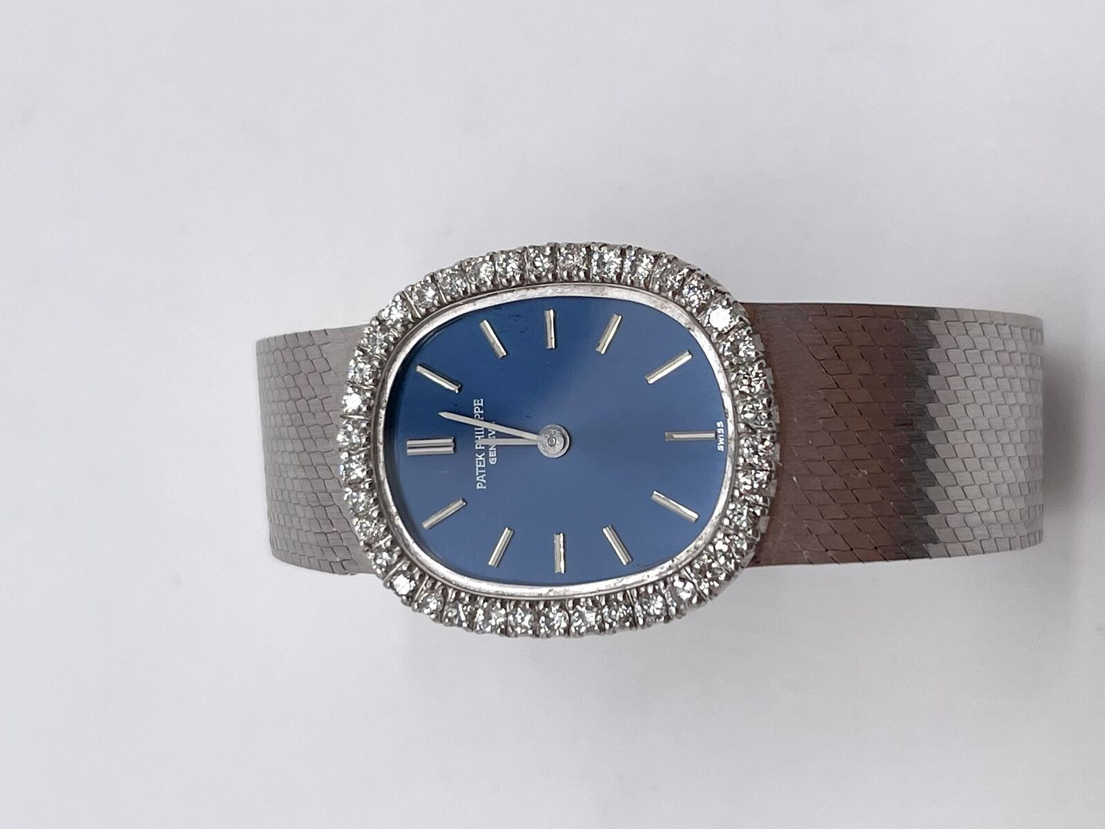 Patek Philippe Ellipse 18K White Gold Diamond Set Ladies Bracelet Watch 21mm