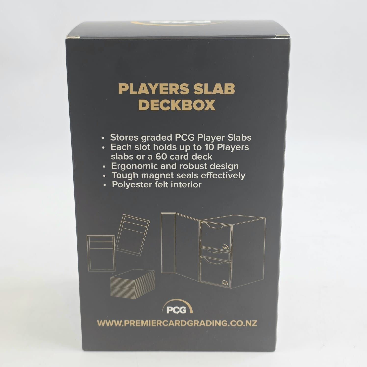 This PCG Players Slab Deckbox is purpose-built for serious collectors who don’t mess around with flimsy storage. Designed to securely store PCG graded player slabs (up to 10 slabs) or a full 60-card deck, it balances durability, protection, and clean aesthetics.