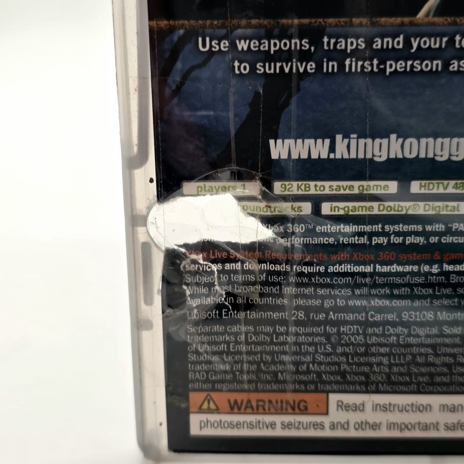 With atmospheric gameplay, minimal HUD design for immersive realism, and a gripping storyline inspired by the film, King Kong delivers a thrilling experience for fans of action-adventure and movie-based games alike. A great addition to any Xbox 360 collection.