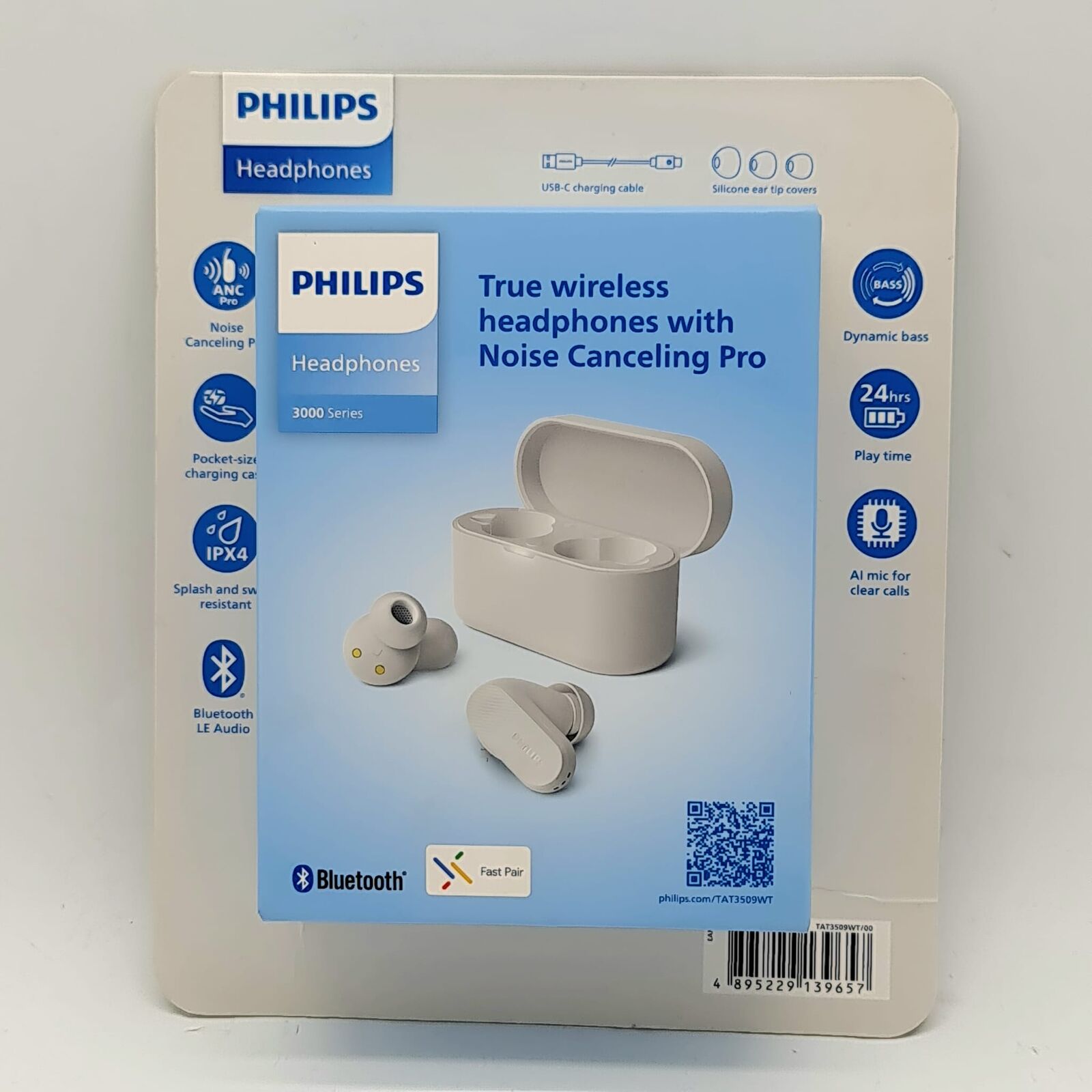 The Philips 3000 Series TAT3509WT wireless headphones are designed to deliver reliable sound performance with the added benefit of active noise cancelling (ANC). Featuring Bluetooth connectivity with support for modern low-energy audio transmission, these headphones provide a stable and efficient wireless listening experience suitable for everyday use, commuting, and travel.