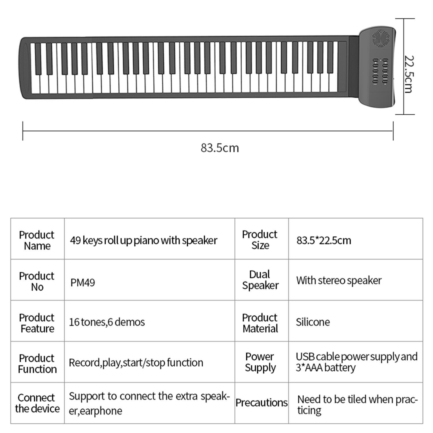 - Piano silicone keyboard is made of soft silicone, will not break after long-term use, and adopts fully sealed design,