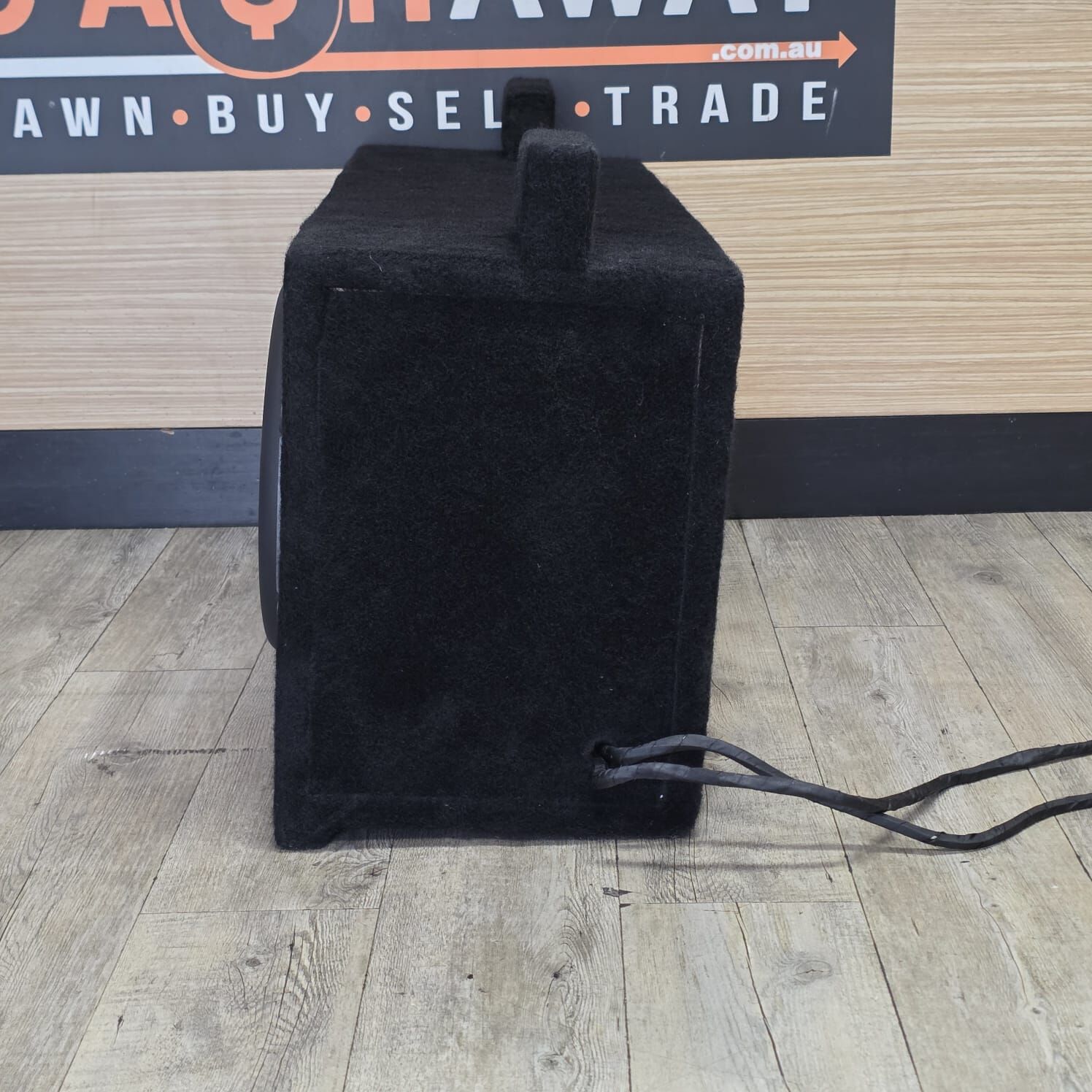 The enclosure features two 10-inch subwoofers mounted securely in a compact, vehicle-friendly design. Its black carpet finish helps protect the box while blending cleanly into most car interiors.