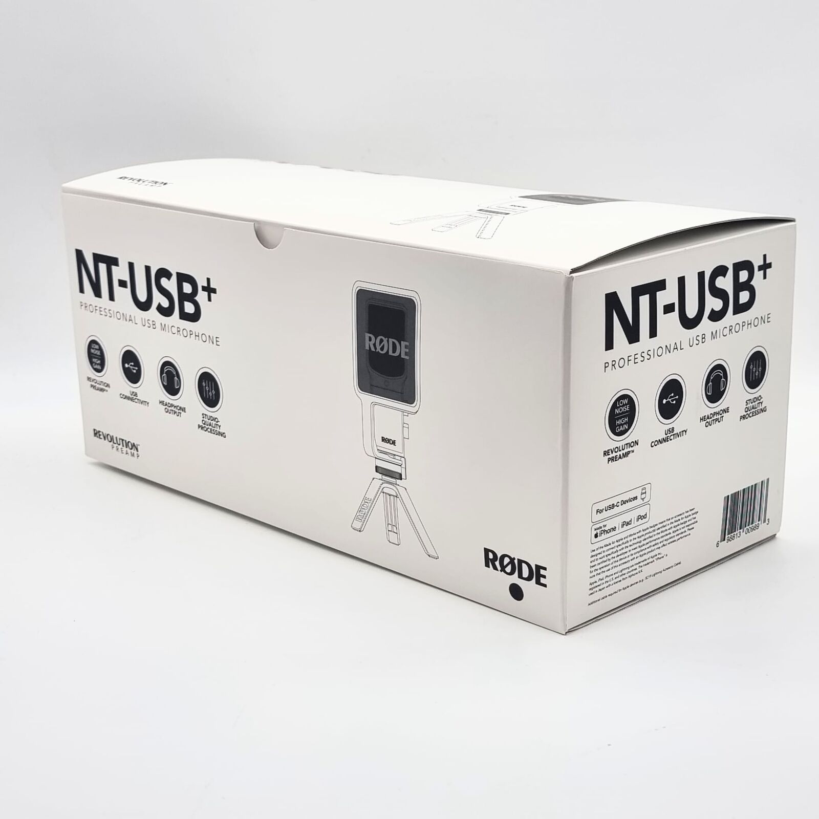 Treat yourself and your audience to broadcast-quality sound with the Rode NT-USB+, a versatile microphone solution that's ready for a wide variety of podcasting, streaming, gaming, and recording applications. The studio-grade capsule evokes the sound of a classic large-diaphragm condenser microphone, delivering warmth and clarity, with a full frequency response and tight cardioid polar pattern for clear, focused audio; use it on a wide range of sources from vocals and speech to acoustic guitar and other instruments. The NT-USB+ features a class-compliant USB-C connector for use with computers as well as iOS and Android tablets and smartphones.