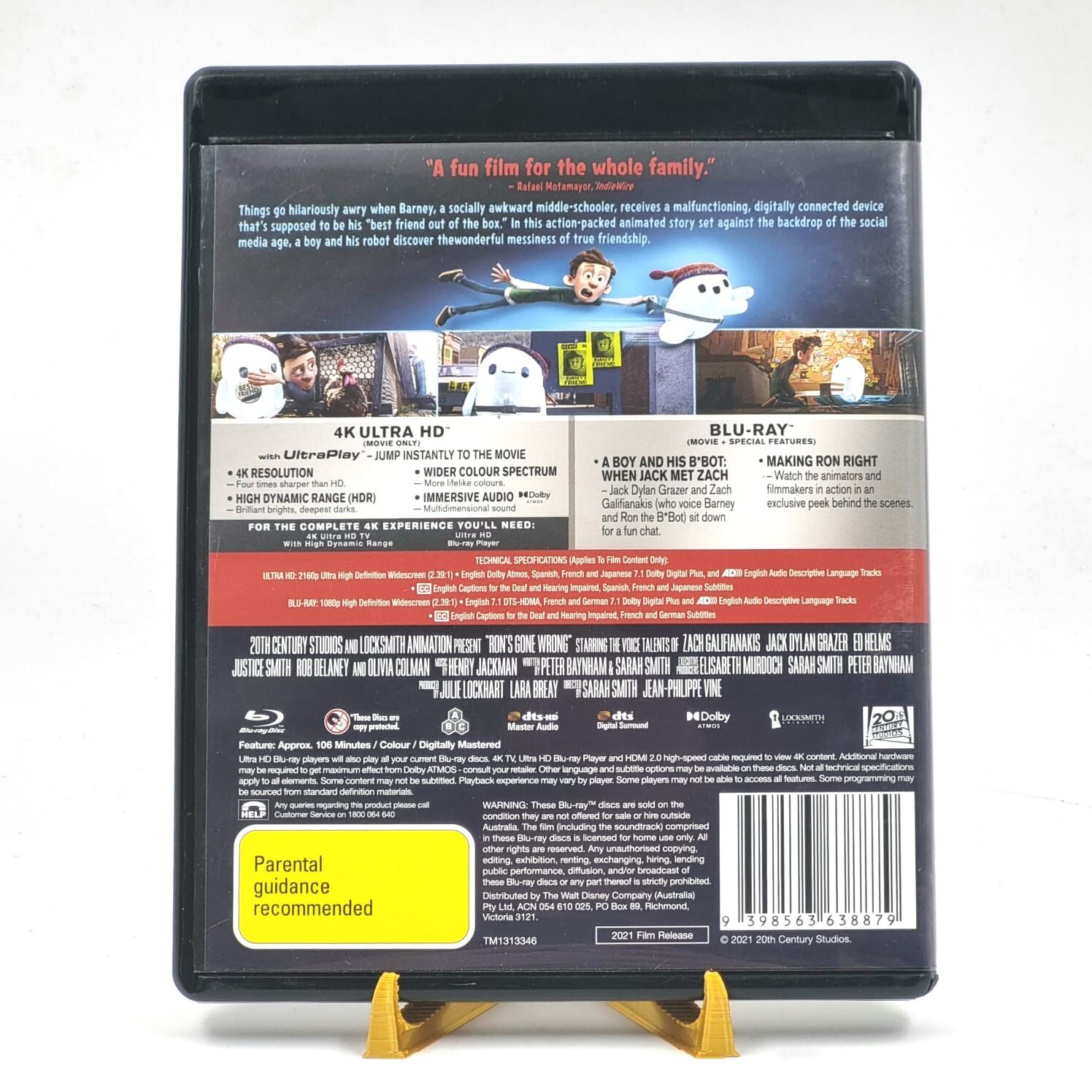 Bring home the heartwarming and hilarious animated adventure "Ron's Gone Wrong" in stunning 4K Ultra HD + Blu-ray. Follow the story of Barney and his malfunctioning robot friend Ron in a laugh-out-loud, tech-gone-wild journey about friendship, connection, and embracing imperfection.