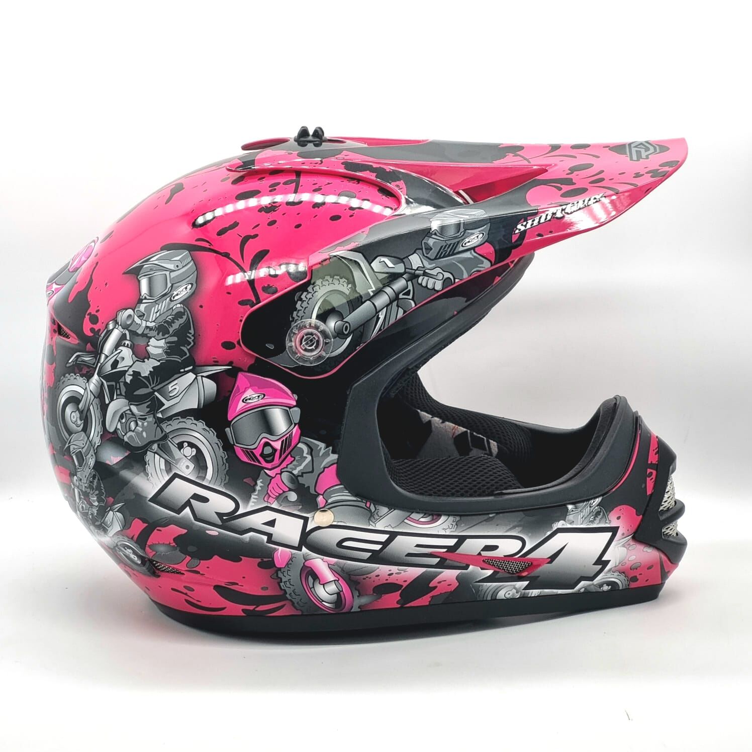 Protect your young rider with the RXT Racer 4 Kids Motocross Helmet in vibrant magenta. Designed specifically for youth riders, this helmet offers superior safety, comfort, and style on the track or trail. Lightweight yet robust, it features advanced ventilation, a snug fit, and durable materials to keep your child safe while riding dirt bikes, BMX, or motocross. Perfect for beginners or experienced young riders, this helmet combines fun color with top-notch protection.