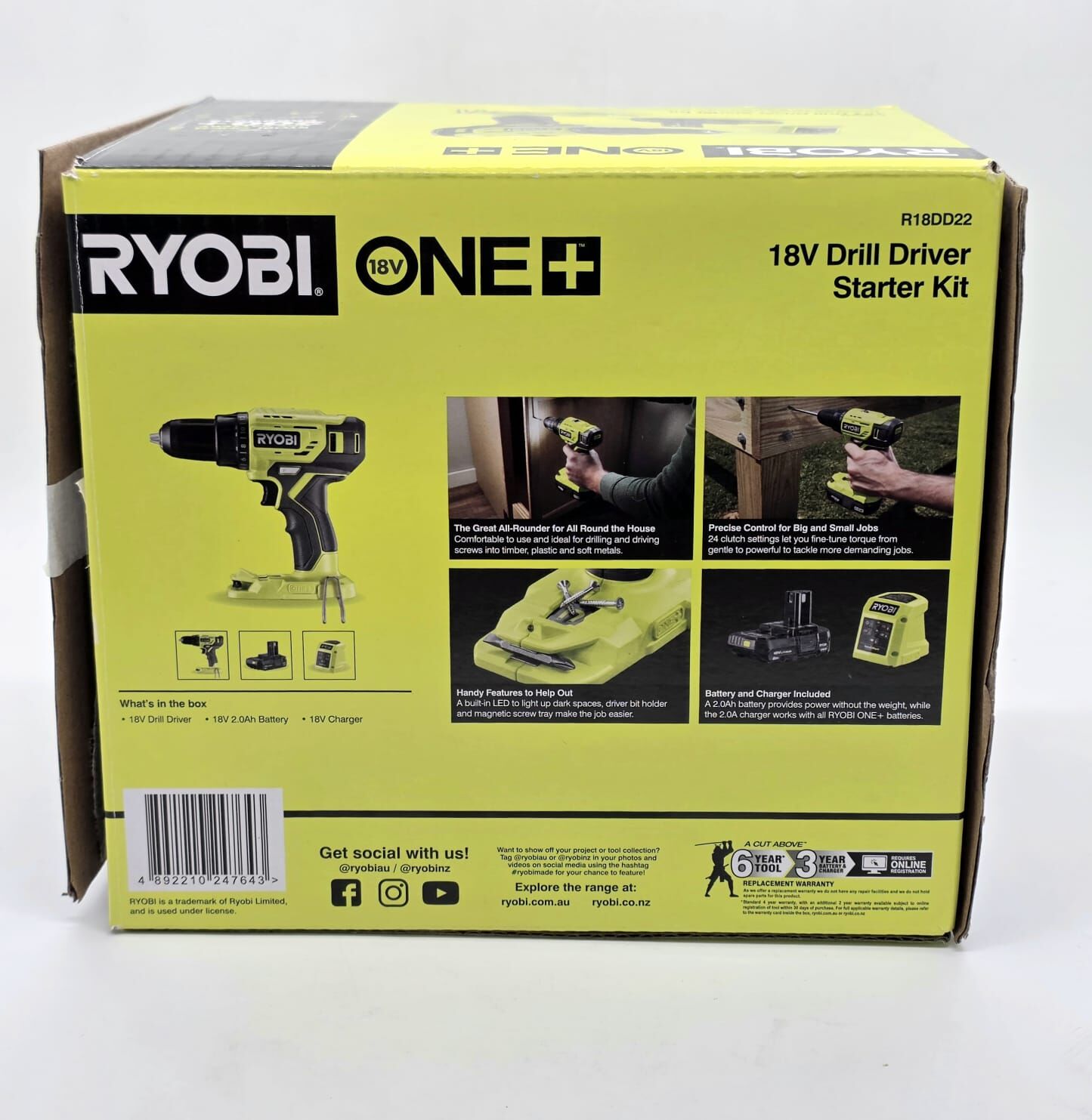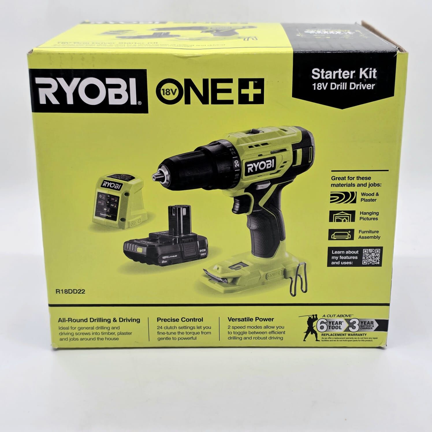 The Ryobi 18V ONE+ Drill Driver Starter Kit (R18DD22) is a versatile and reliable solution for everyday drilling and fastening tasks around the home or workshop. Designed for use on wood, metal, and plastic, this drill driver combines practical power with ease of use.
