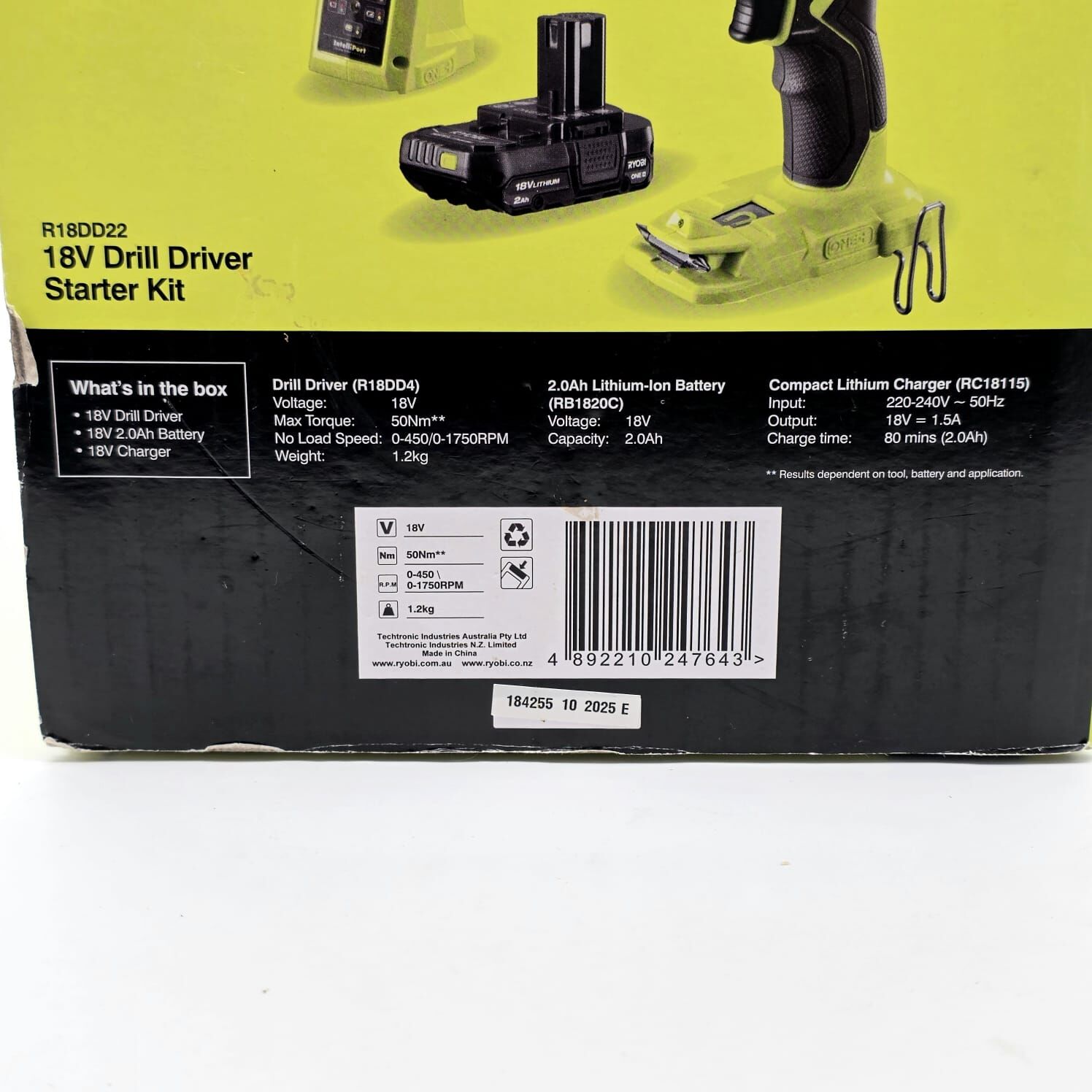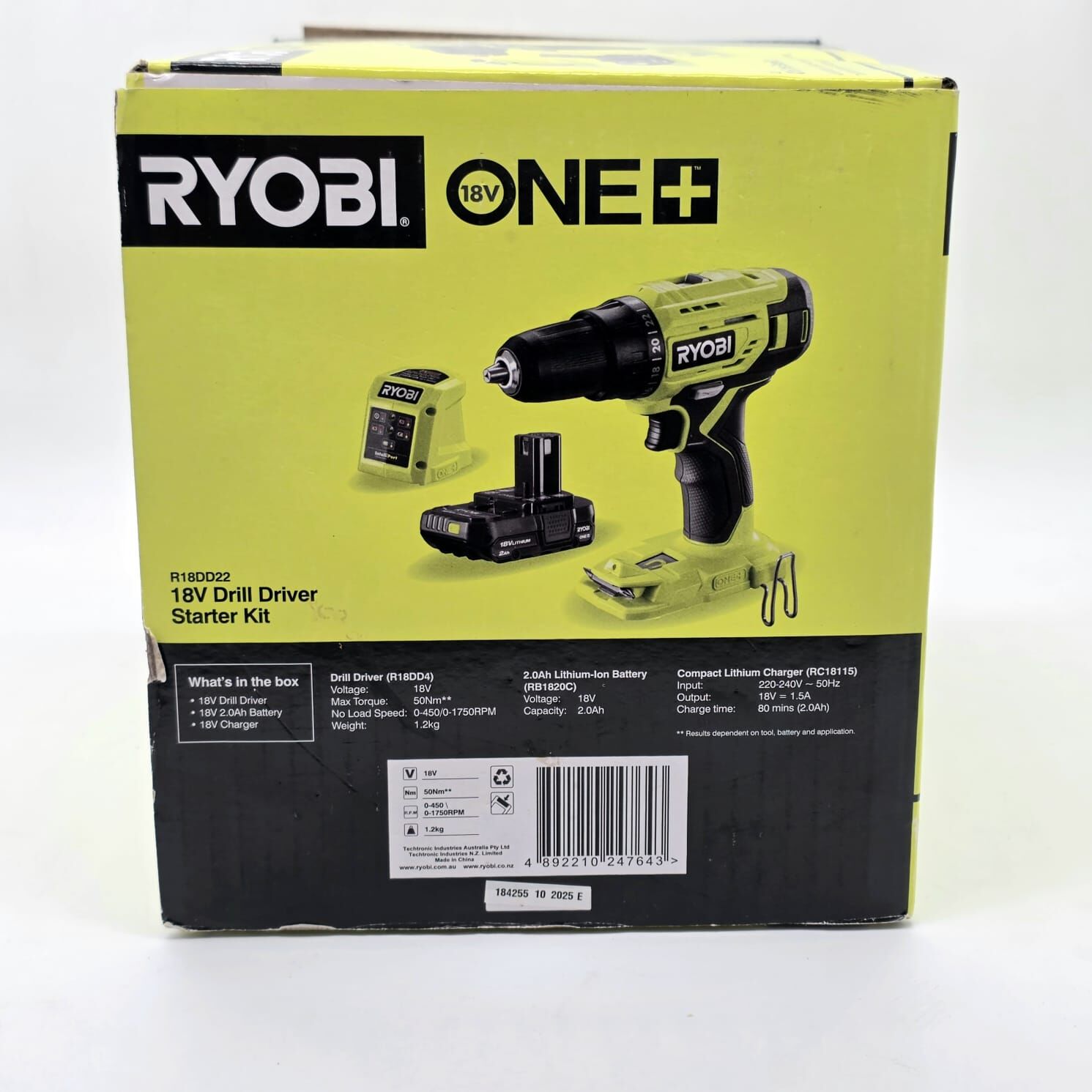 Ryobi 18V ONE+ Drill Driver Starter Kit R18DD22 with 2.0Ah Battery and Charger