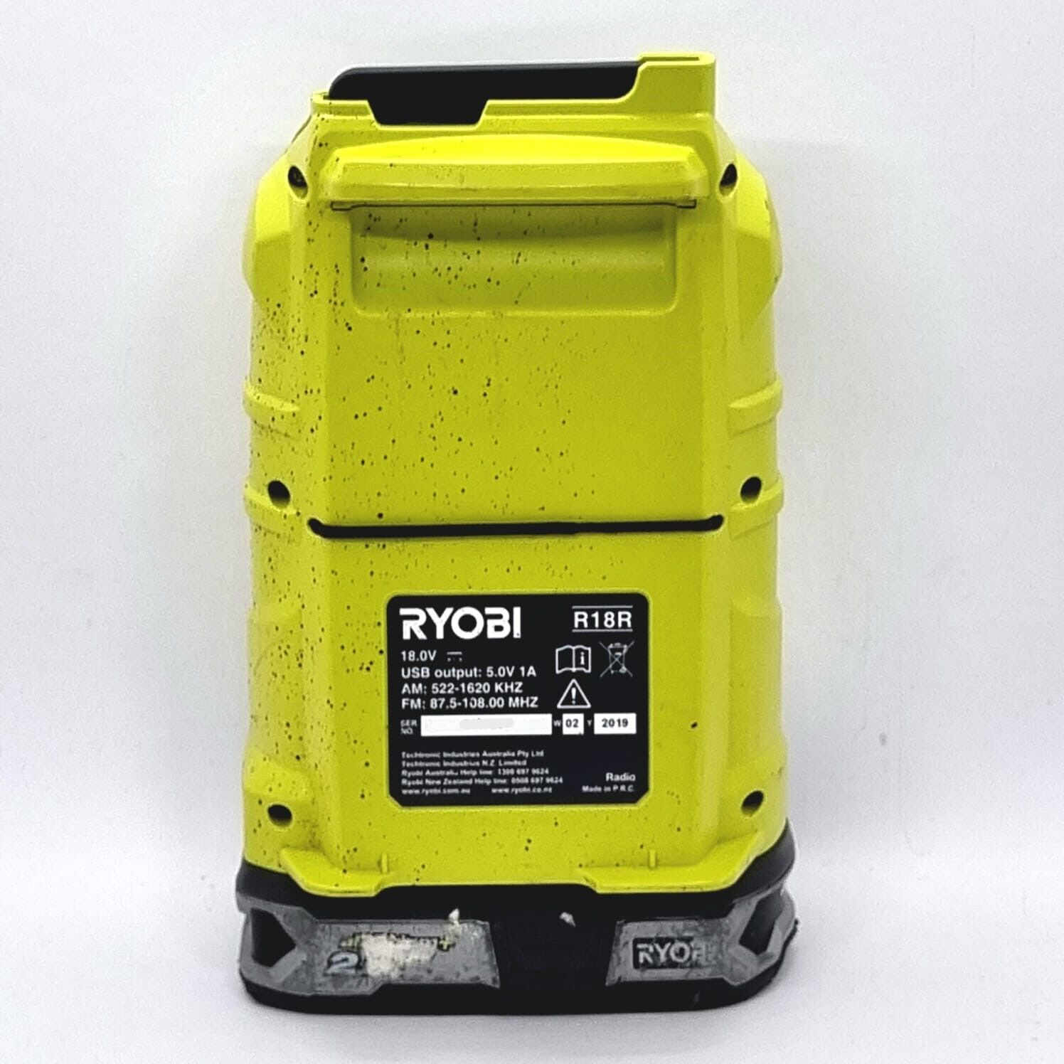 Enjoy your favorite music and radio broadcasts anywhere with the Ryobi R18R Work Radio and Bluetooth Speaker. Powered by an 18V ONE+ 2.5Ah battery, this portable radio is perfect for job sites, workshops, or outdoor activities. It features Bluetooth wireless technology for seamless streaming up to 10 meters, AM/FM radio with digital tuning, and 10 station presets for convenience. The powerful 75mm speaker delivers clear sound, while the built-in USB port lets you charge your mobile devices on the go. Rugged and compact, the Ryobi R18R is a versatile companion for work and play.