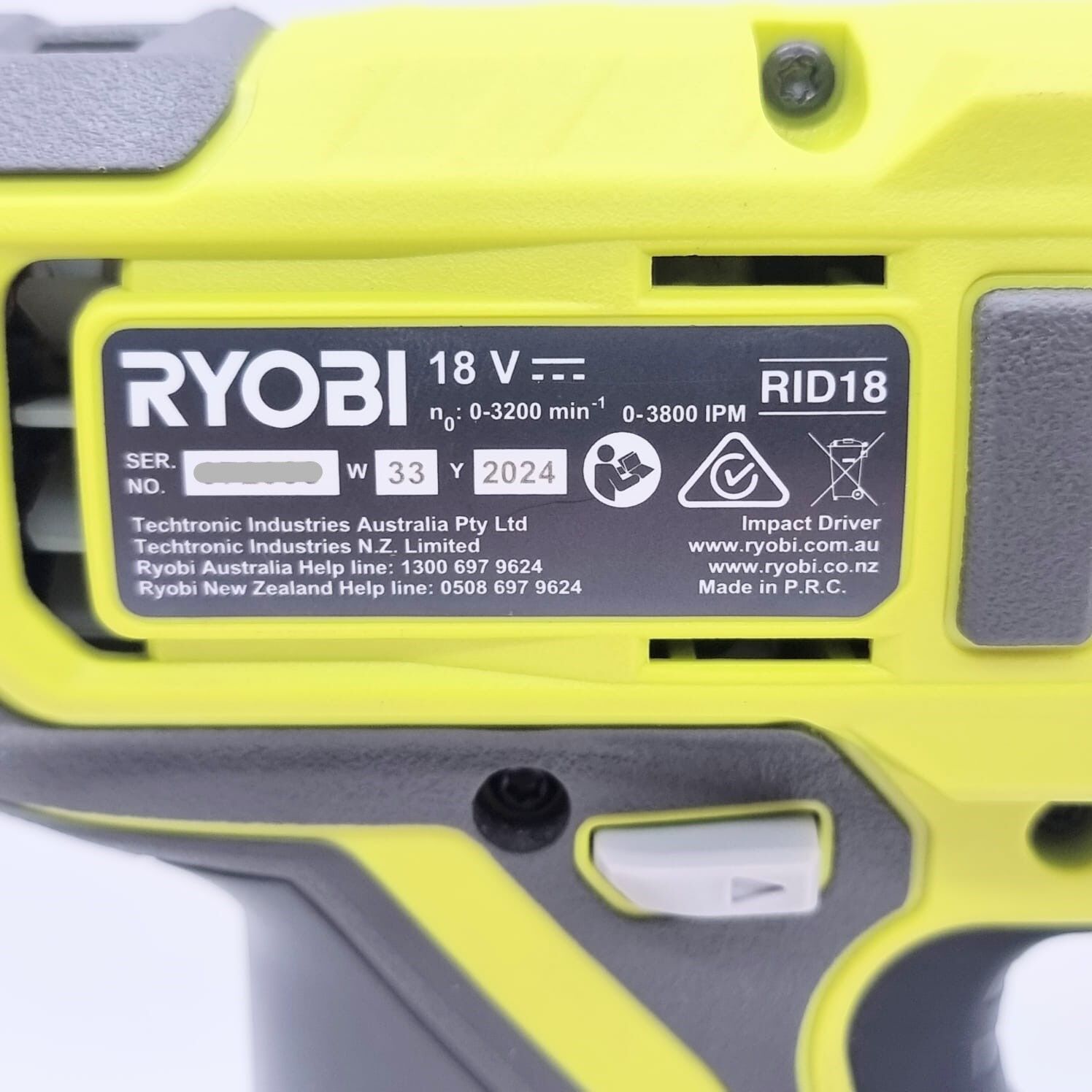 Ryobi 18V ONE+ RID18 Cordless Impact Driver with 2.0Ah Battery Pack
