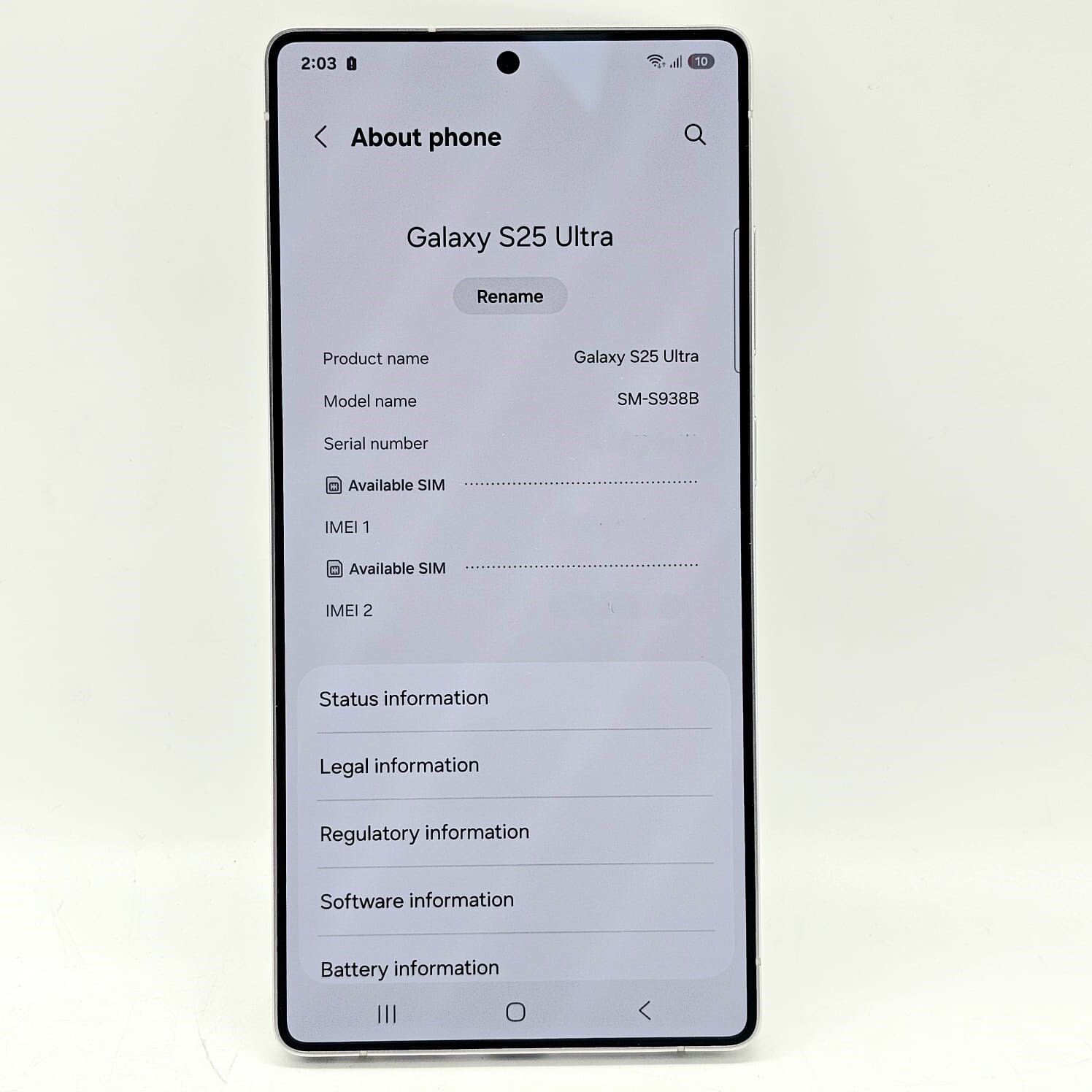 - Model: Samsung Galaxy S25 Ultra SM-S938B