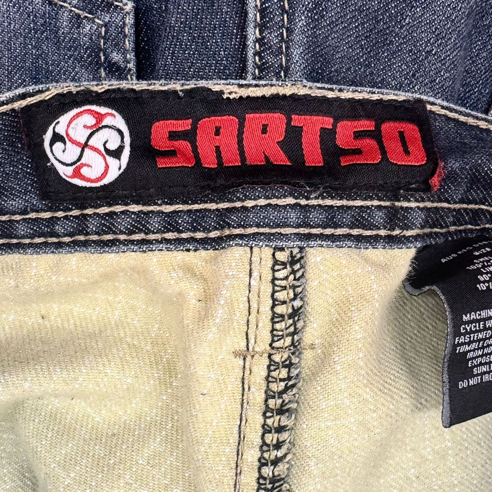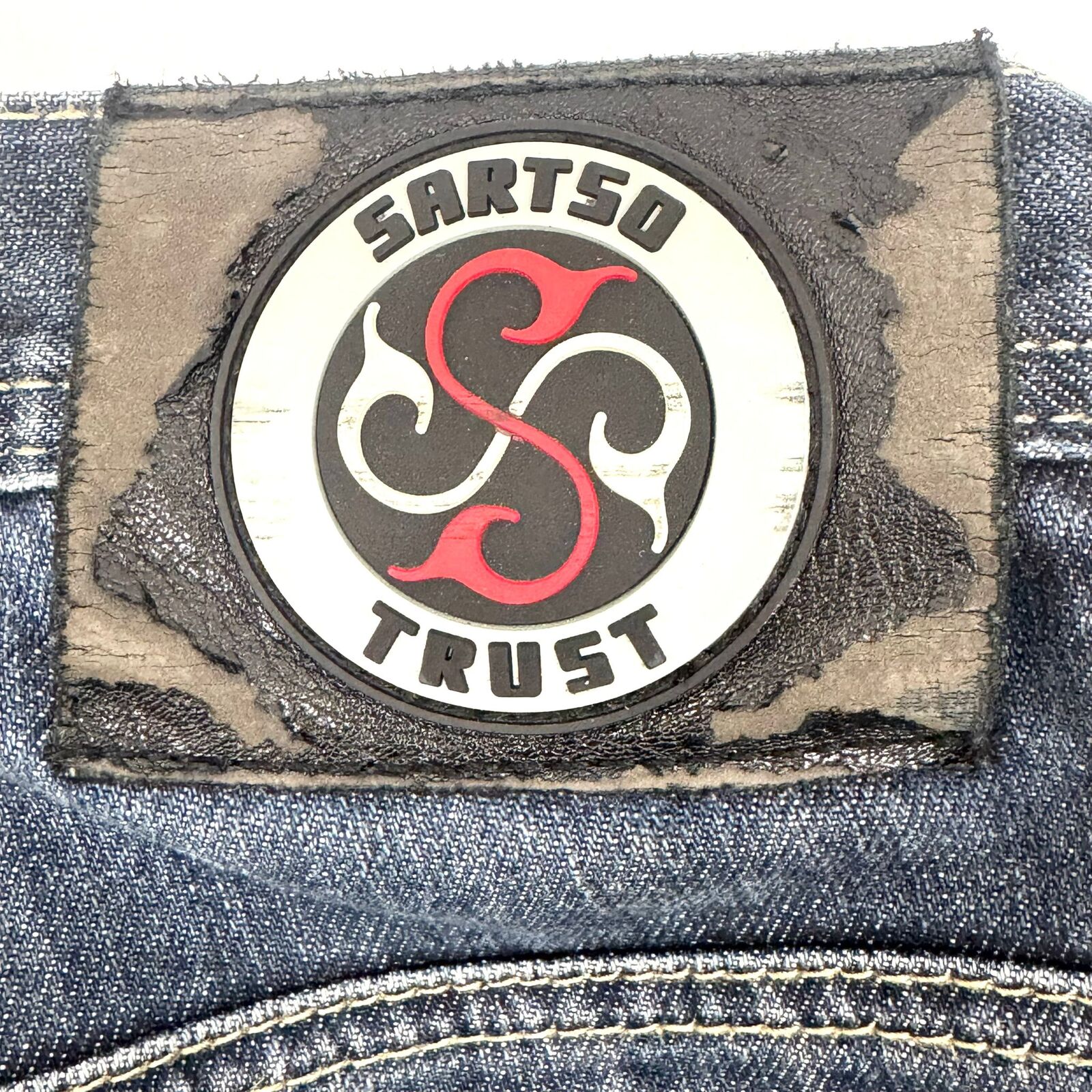 - Branding: Sartso woven label on internal waistband and Sartso Trust patch on rear exterior waistband