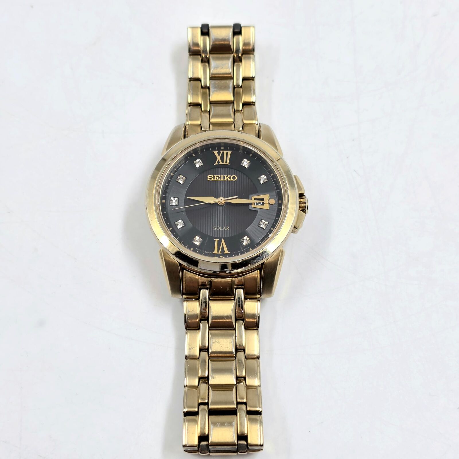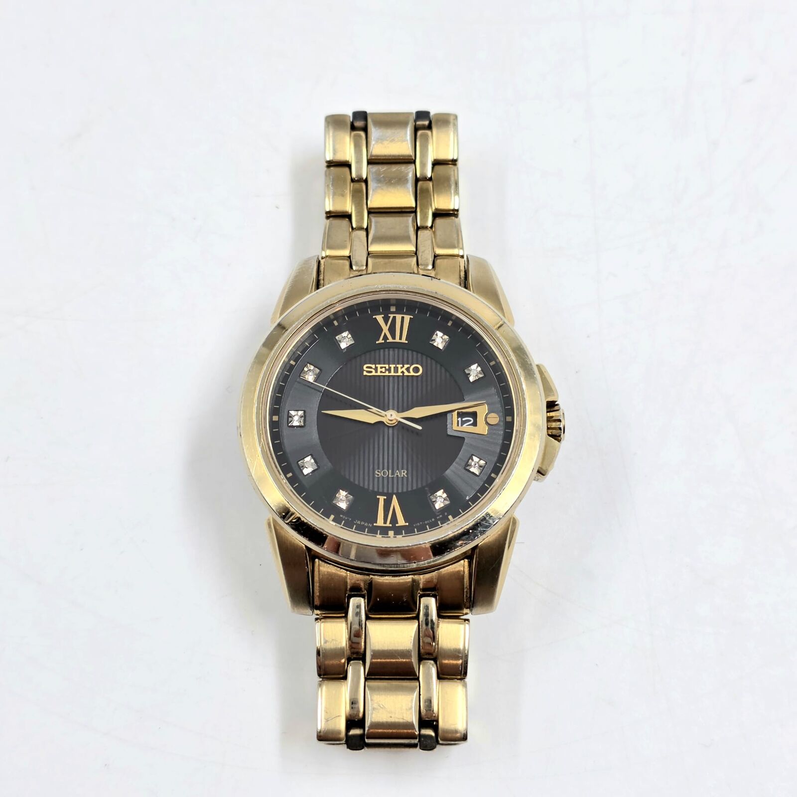 Seiko V157-0BF0 Date Display Gold Tone Stainless Steel 10Bar Solar Mens Watch