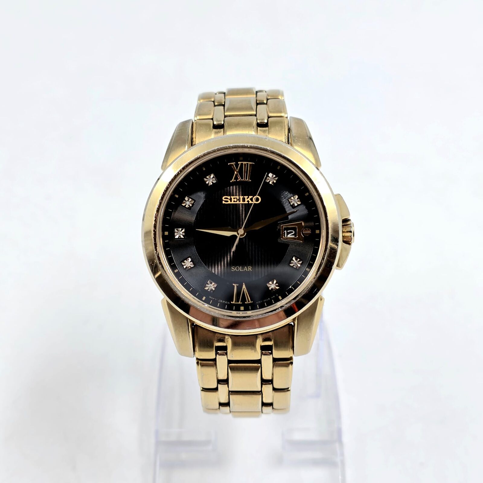 - Solar-powered Seiko V157 movement (no battery changes)