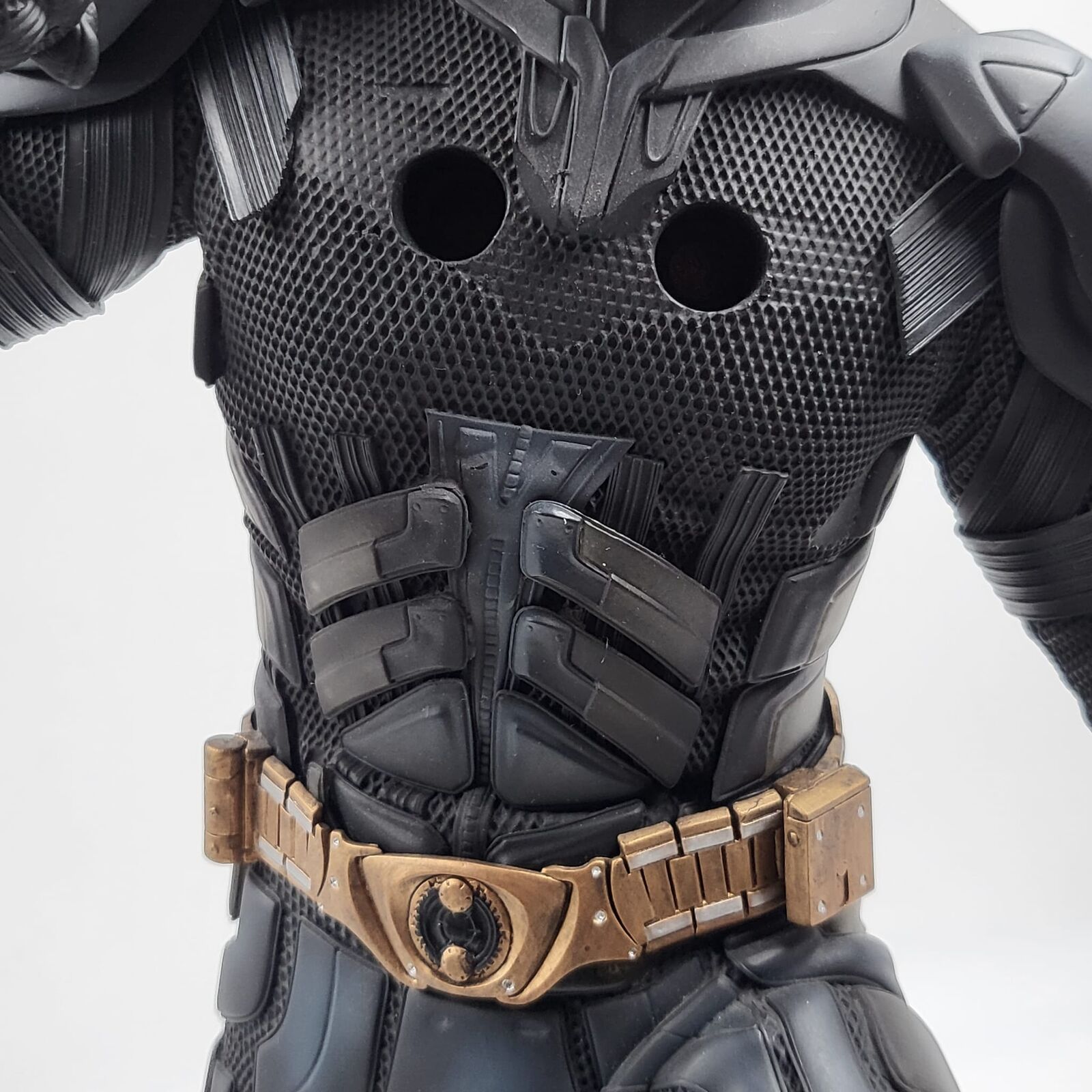 - Mixed media: polystone body & real fabric suit/cape