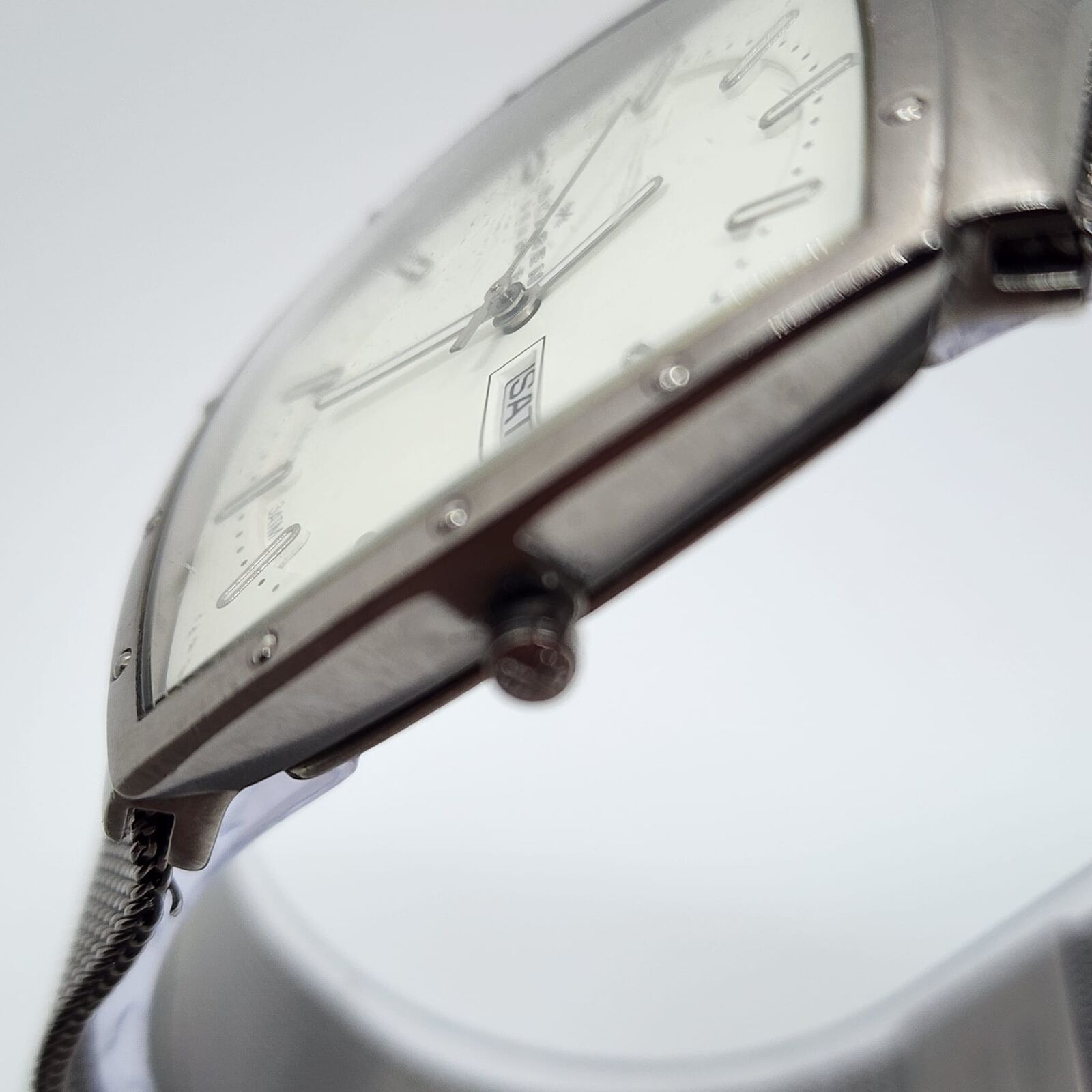 - All stainless steel construction, case, back, and mesh band