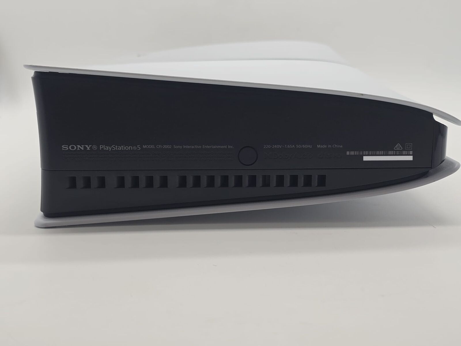 The Sony PlayStation 5 Digital Console CFI-2002 in white is a powerful and sleek gaming console designed for the ultimate gaming experience. With a slim design, it allows for ample space to store games, applications, and media.