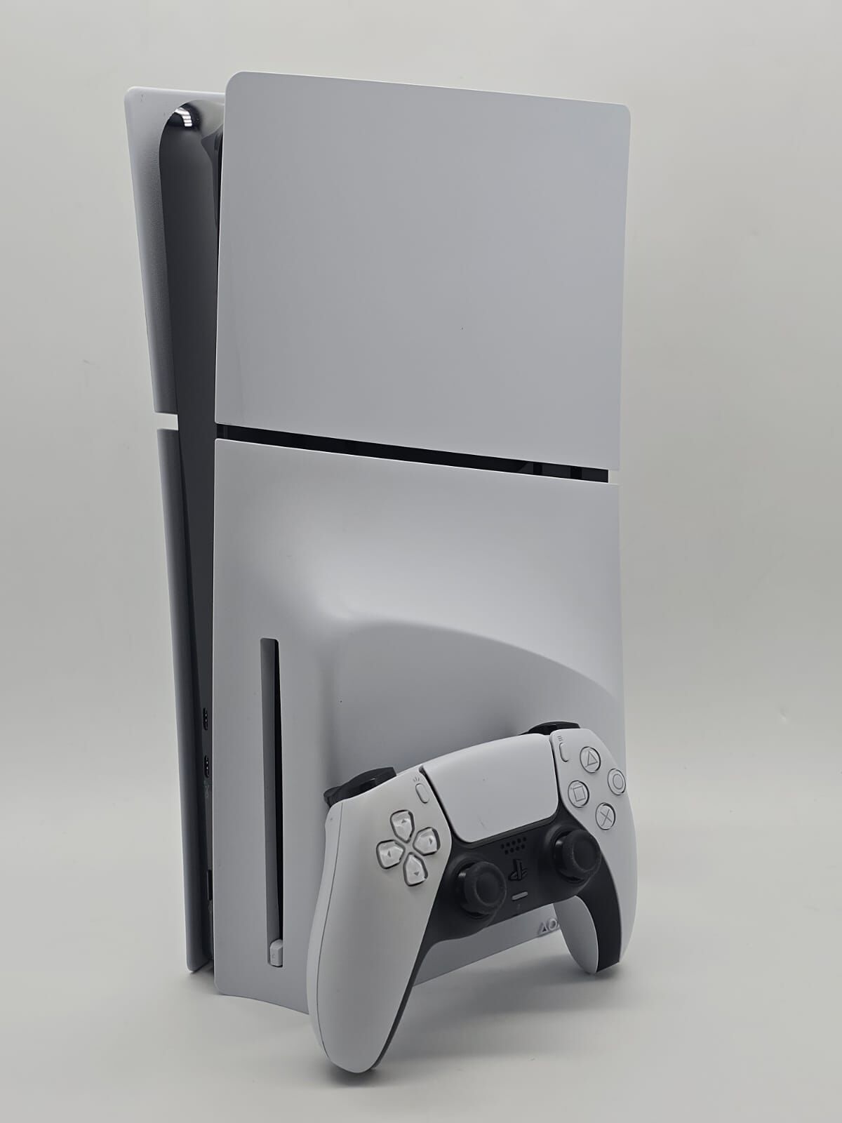 The Sony PlayStation 5 Slim Disc Edition is a powerful and sleek gaming console designed for the ultimate gaming experience. With its slim design, this edition boasts a 1TB storage capacity, providing ample space to store games, applications, and media. The console comes with a DualSense white controller, known for its immersive haptic feedback and adaptive triggers.
