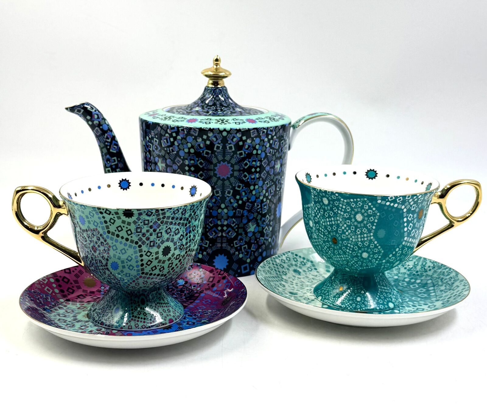 Experience the elegance of Moroccan tea rituals with the T2 Blue Moroccan Tea For Two Set. Crafted from fine bone china, this set includes a teapot and two matching cups, combining timeless design with superior quality. Ideal for gifting or enjoying tea at home, the vibrant blue finish adds a touch of sophistication to any setting. Perfect for intimate tea sessions, this set balances style and practicality.