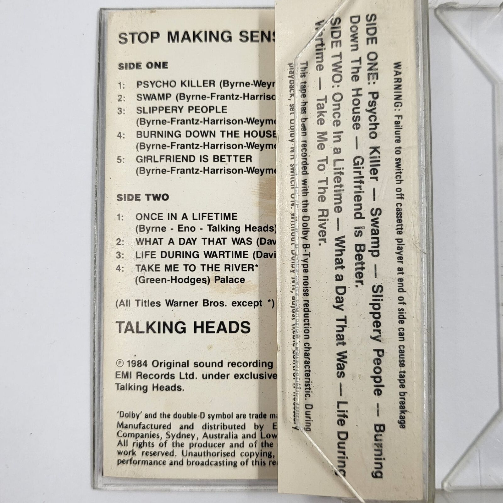 Talking Heads Stop Making Sense 1984 Cassette Tape Vintage Rare