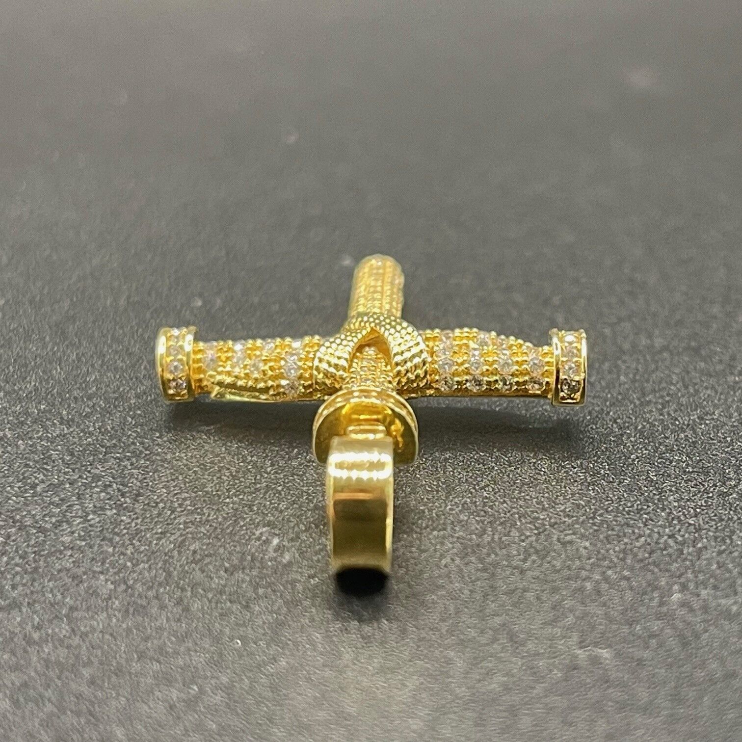 Unisex 18ct Yellow Gold Cubic Zirconia Cross Pendant