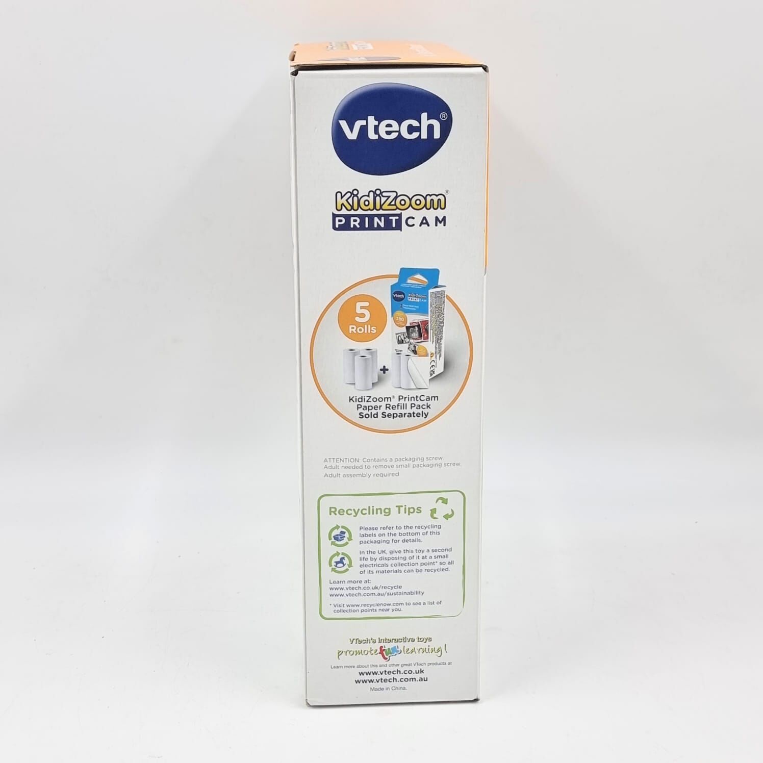 The VTech Kidizoom Print Cam is a fun and creative 5MP digital camera designed for kids who love taking photos and printing them instantly. It captures photos and videos, adds effects, and prints black and white images instantly with no ink required.